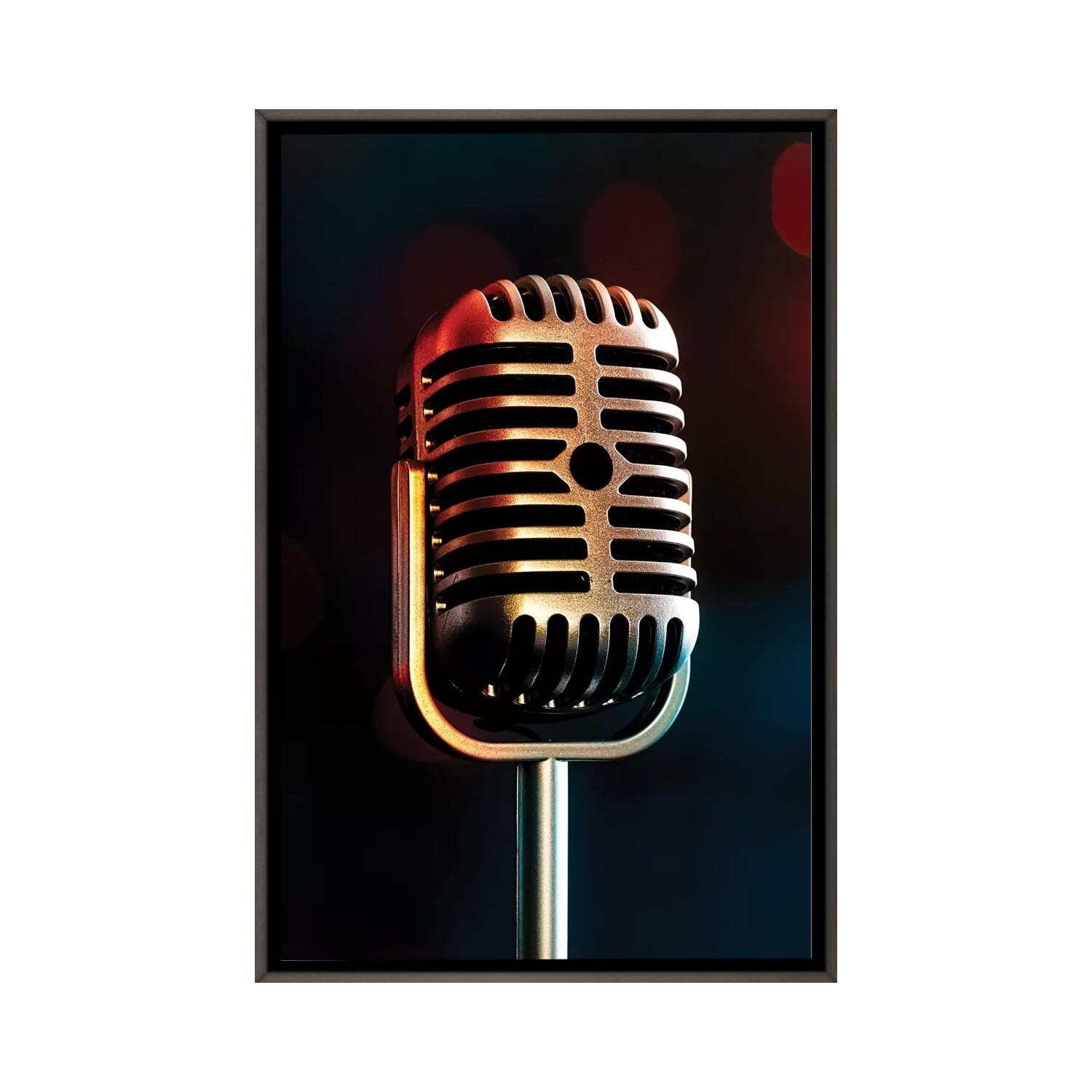 iCanvas "Retro Microphone III" by Tom Quartermaine Framed