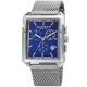 Akribos XXIV Men's Rectangular Chronograph Date Silver-tone/ Blue Bracelet Watch