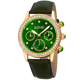 August Steiner Women's Multifunction Dual Time Swarovski Crystal Gold-Tone/ Green Leather Strap