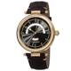 Akribos XXIV Men's Mechanical Skeleton Round Leather Gold-Tone Strap Watch