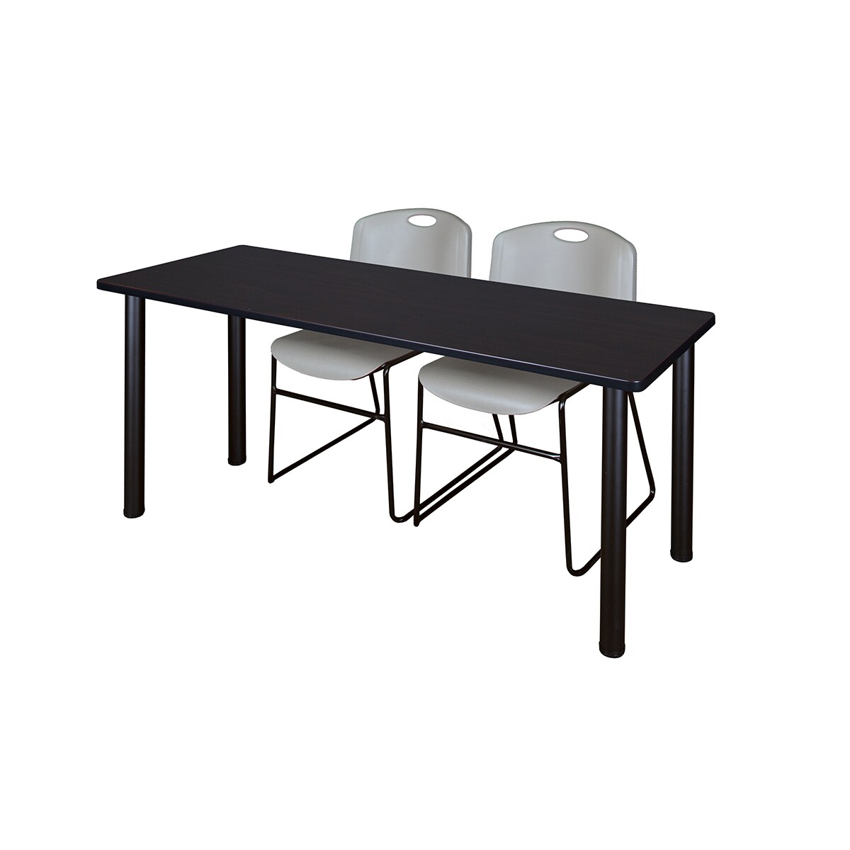 Kee Black 66-inch x 24-inch Training Table with 2 Grey Zeng Stack Chairs