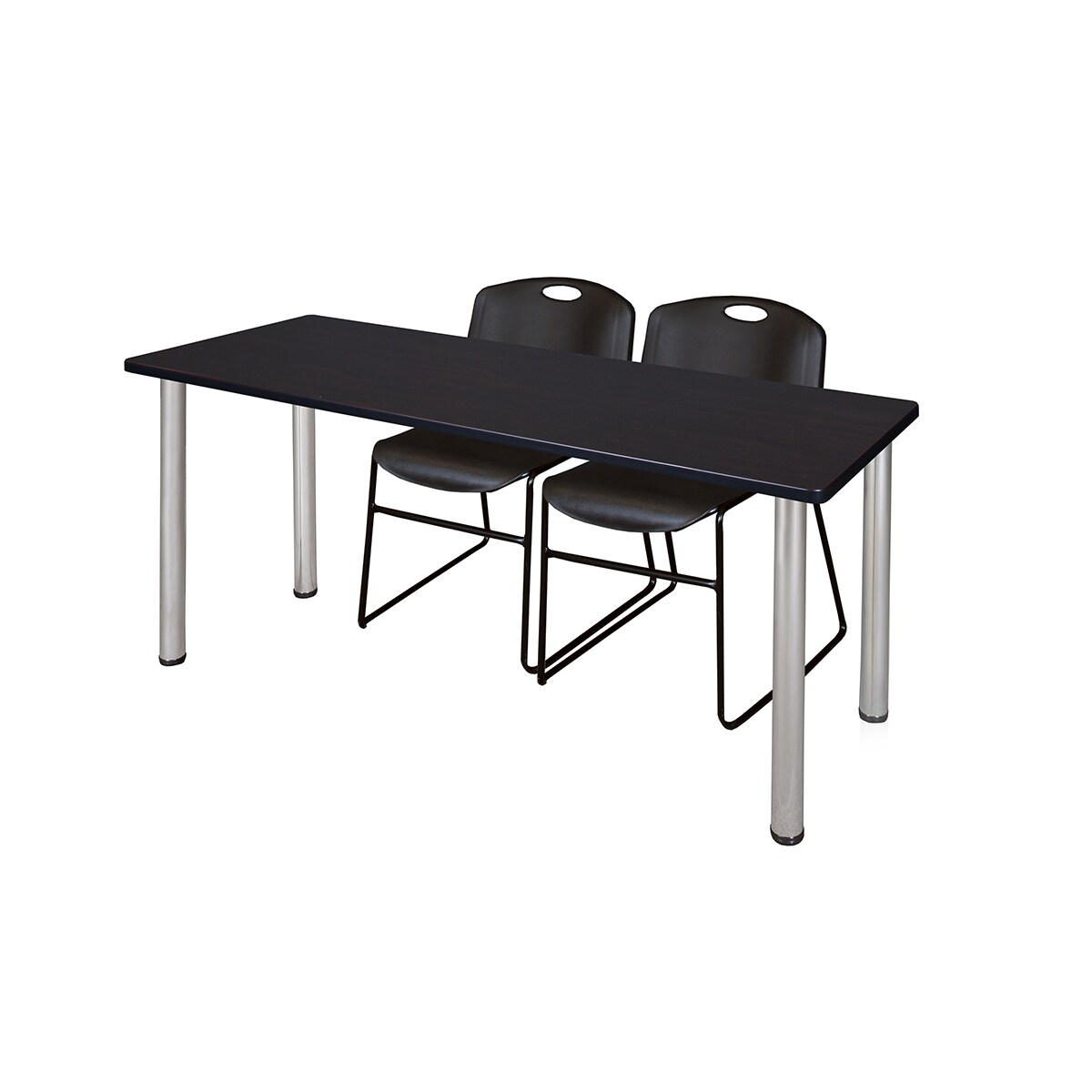 Kee Chrome 66-inch x 24-inch Training Table with 2 Black Zeng Stack Chairs