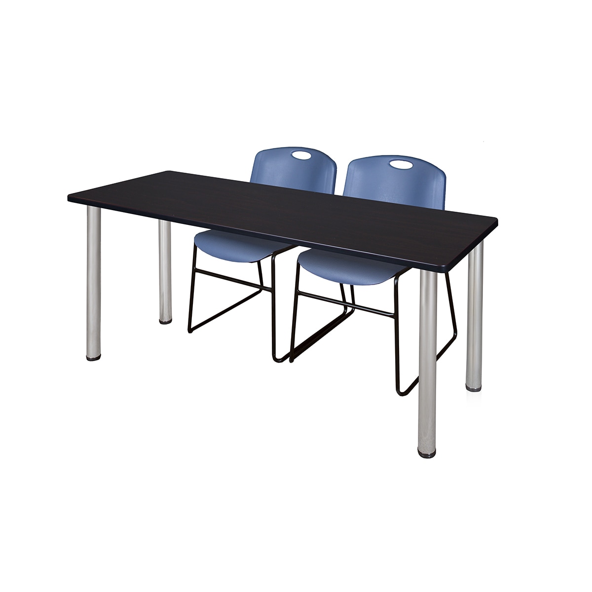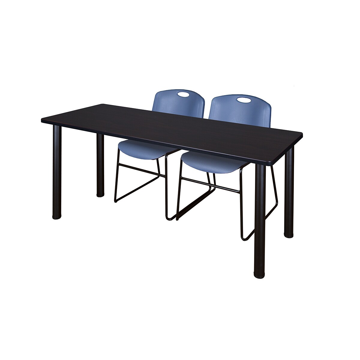 Kee Black 72-inch x 24-inch Training Table with 2 Blue Zeng Stack Chairs
