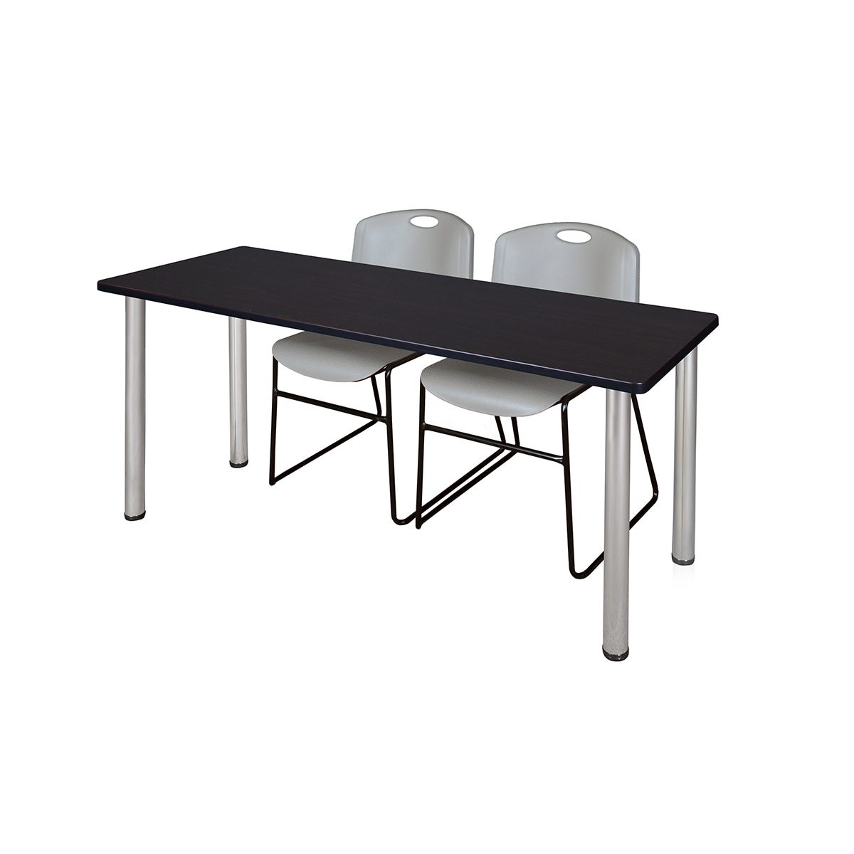 Kee Chrome 60-inch x 24-inch Training Table with 2 Grey Zeng Stack Chairs