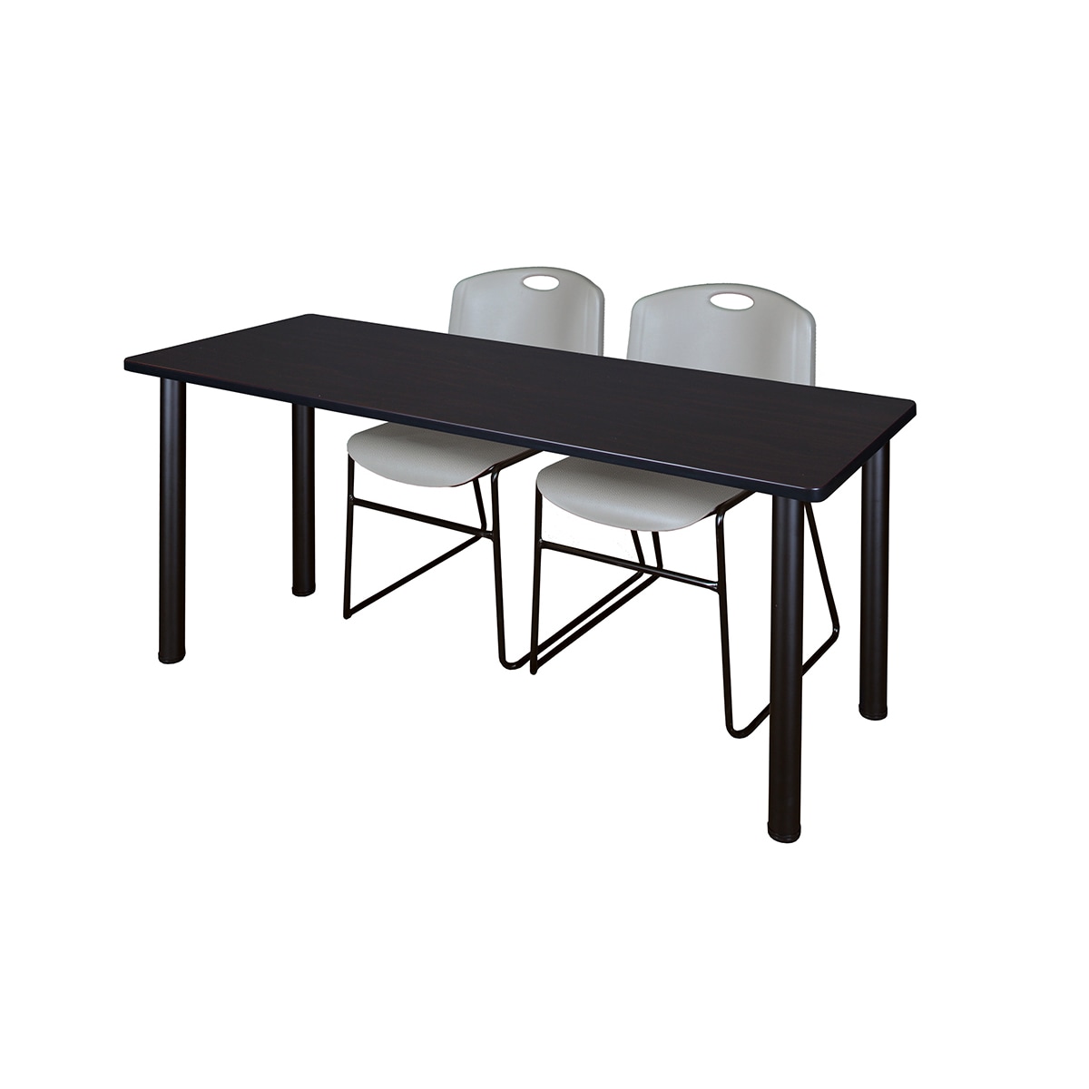 Kee Black 72-inch x 24-inch Training Table with 2 Grey Zeng Stack Chairs