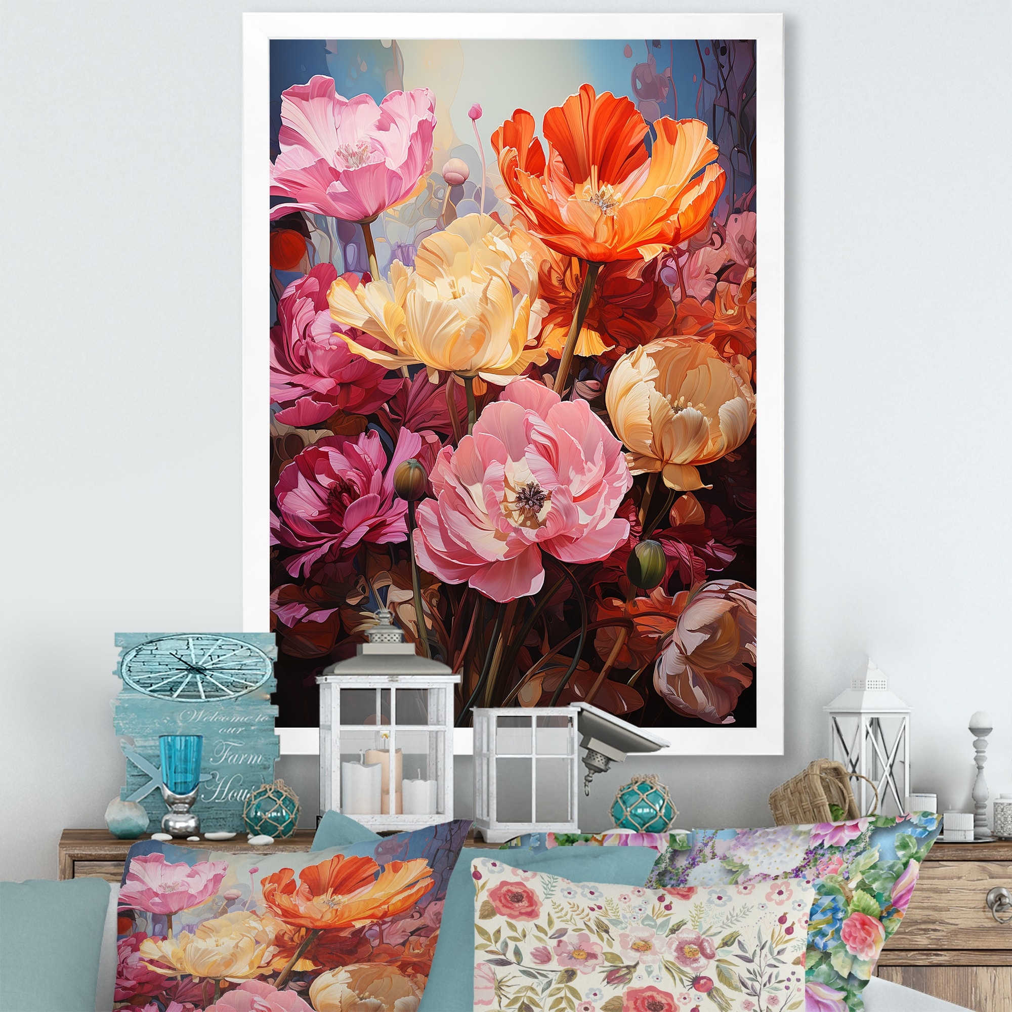 Designart "Tulips Fields of Color I" Tulips Framed Wall Art Living Room
