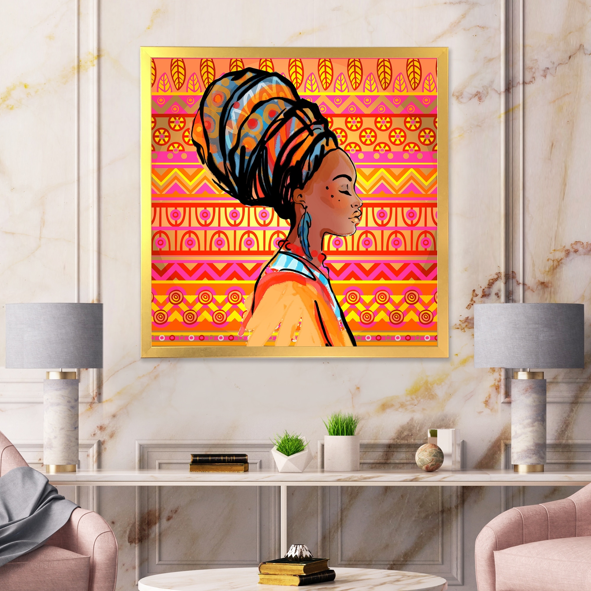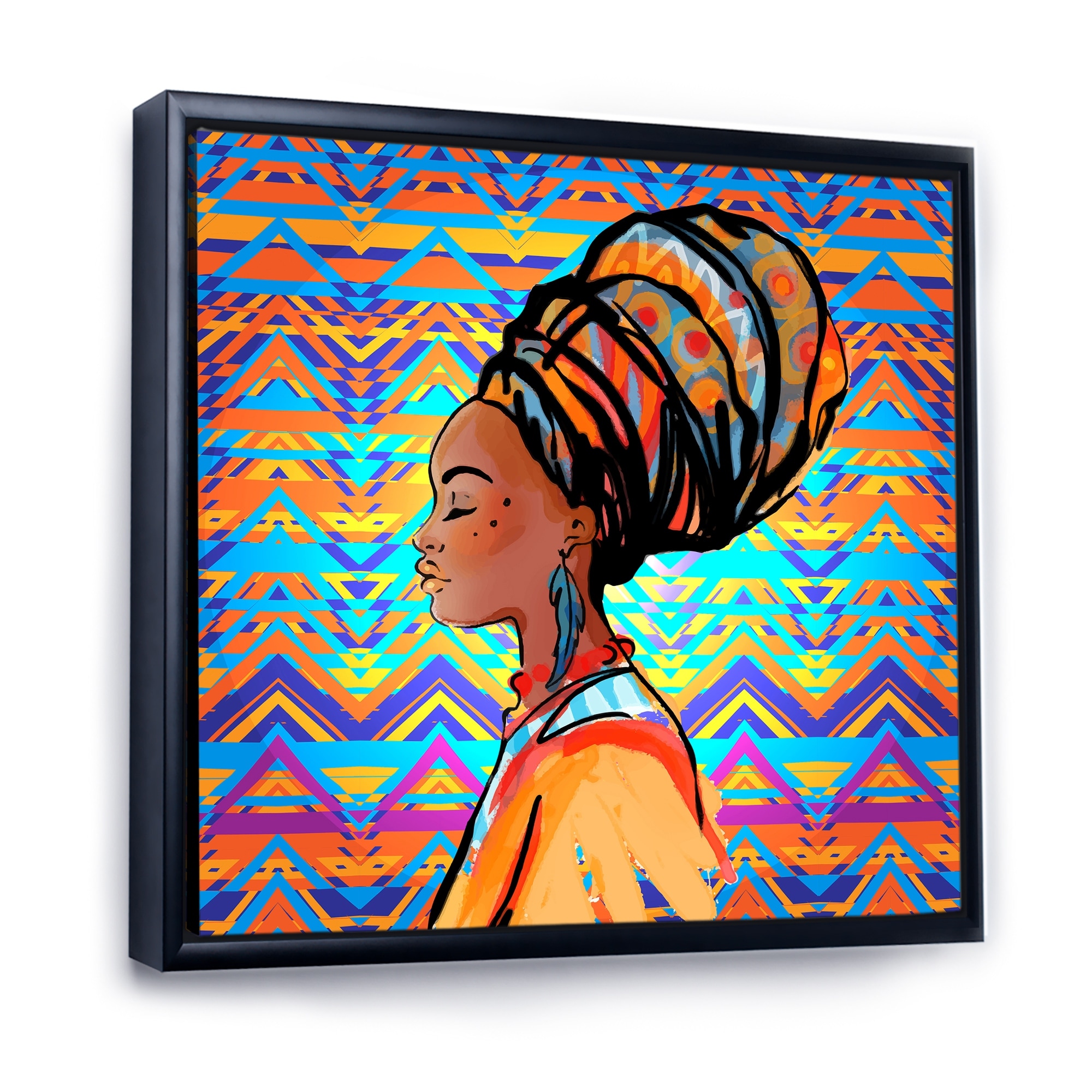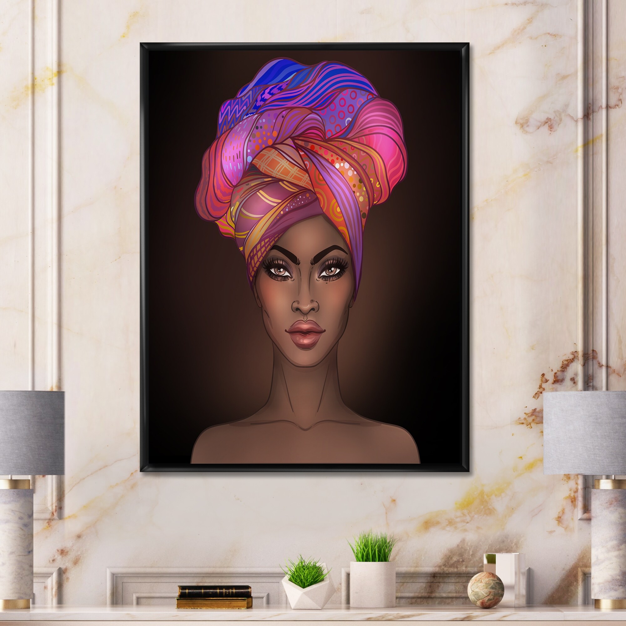 Designart "African American Woman with Turban II" Modern Framed Canvas Wall Art Print