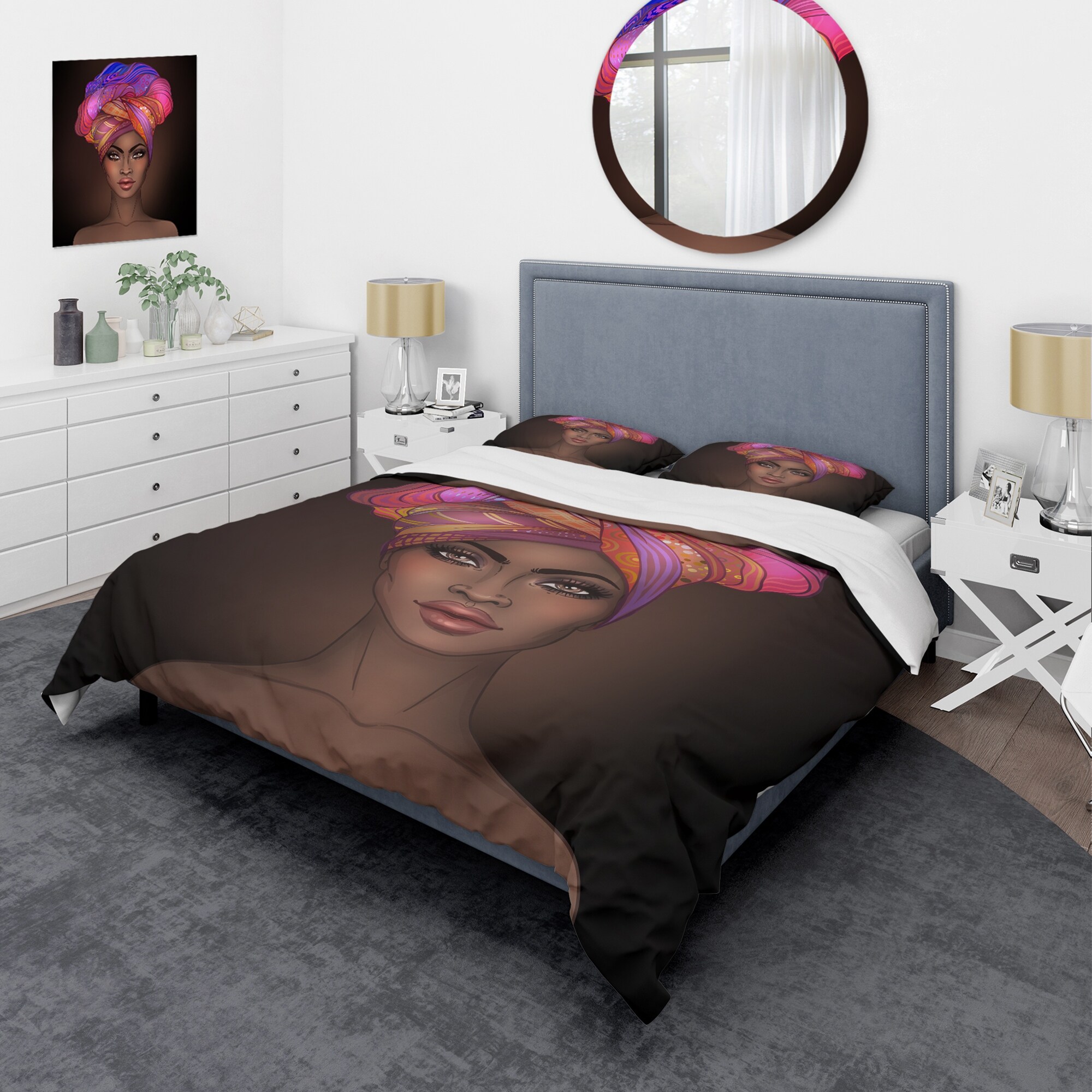 Designart 'Portrait of African American Woman With Turban III' Modern Duvet Cover Set