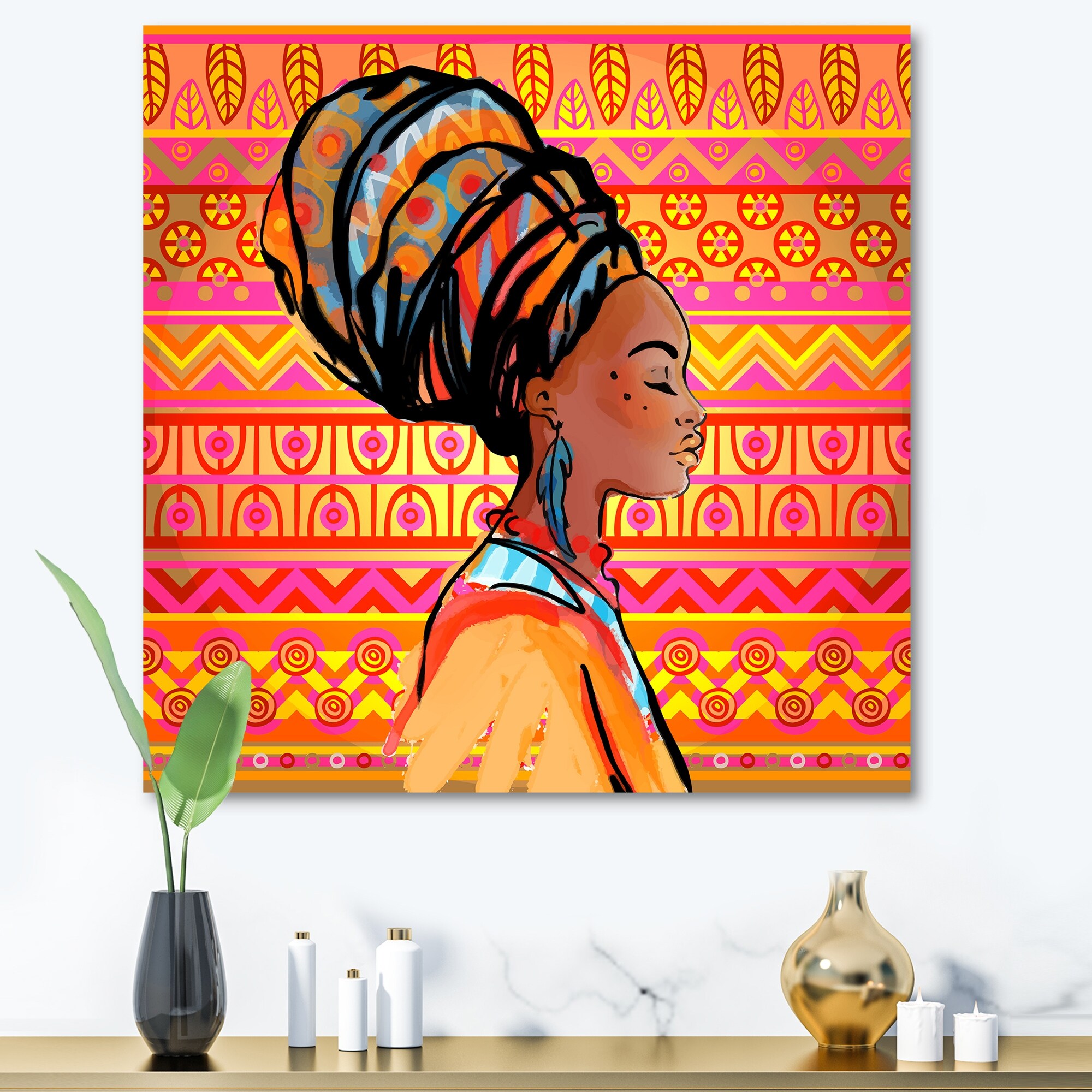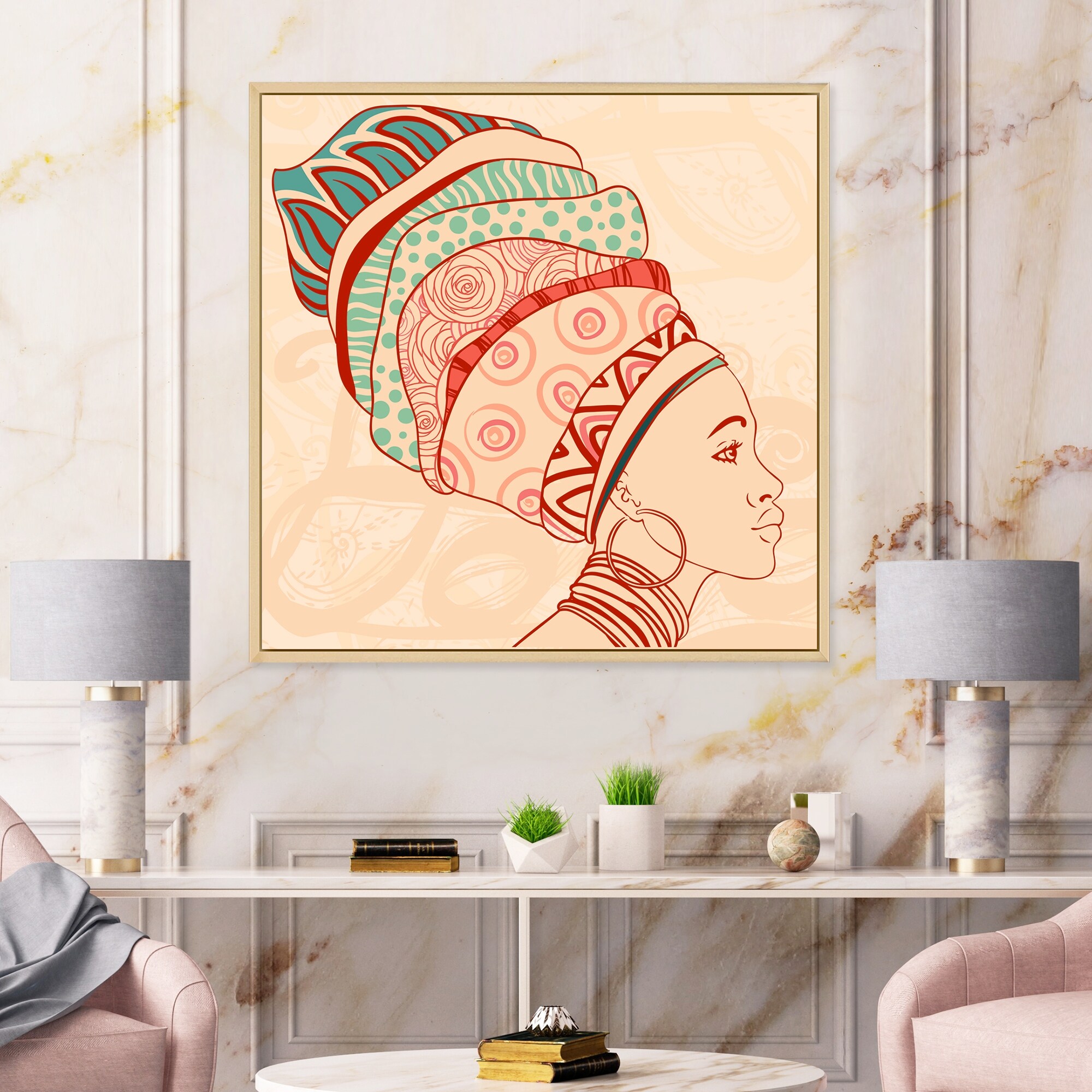 Designart "African American Woman with Turban III" Modern Canvas Wall Art Print