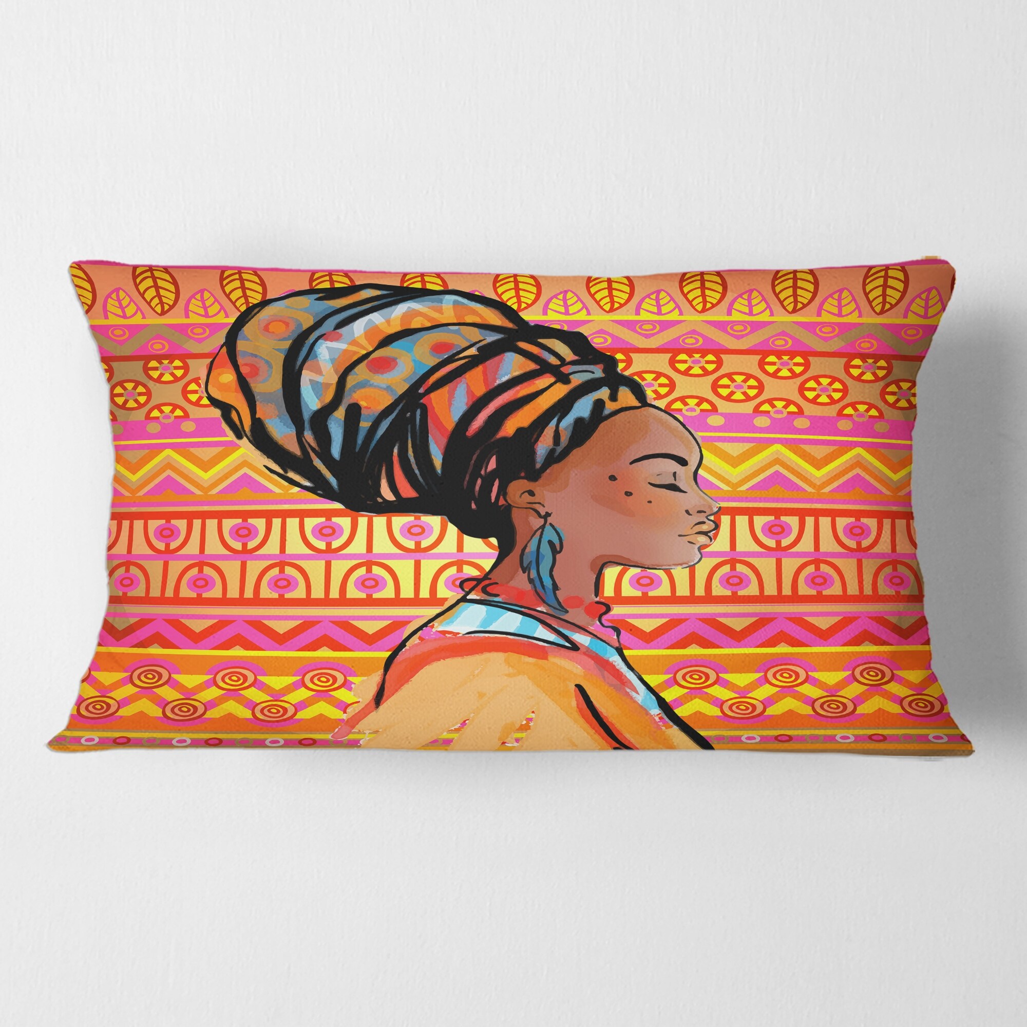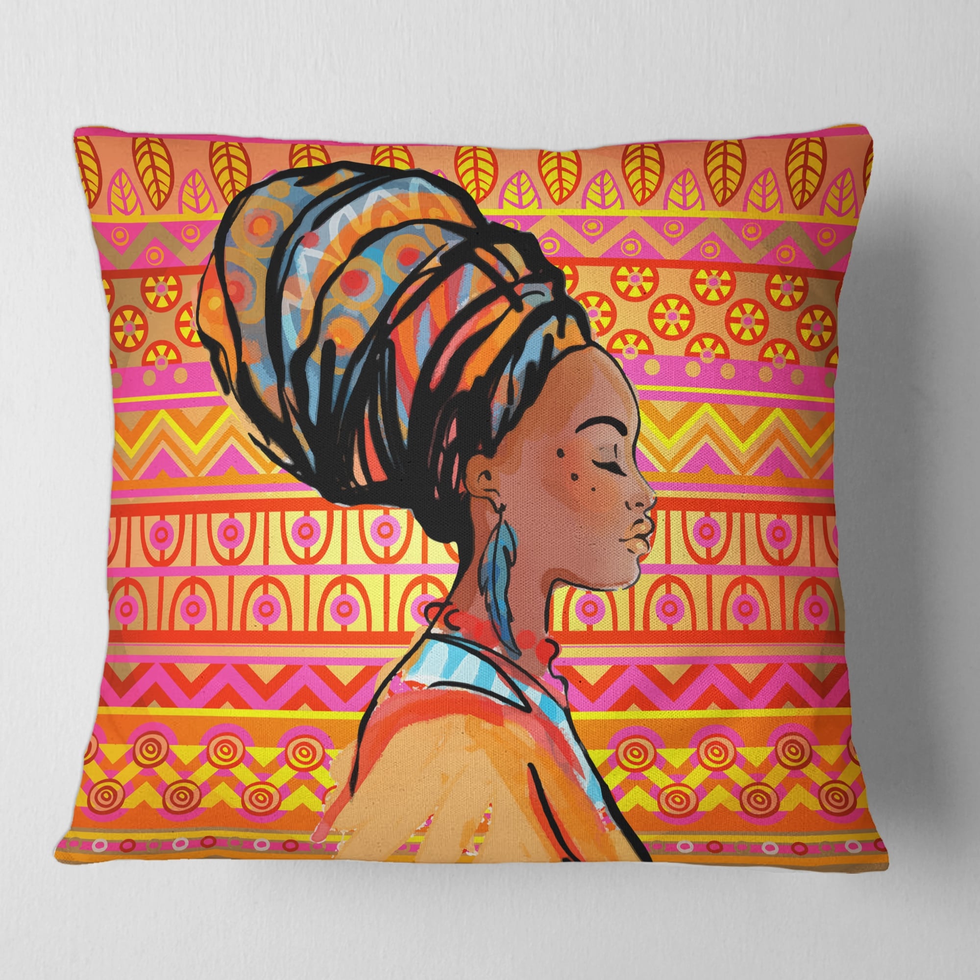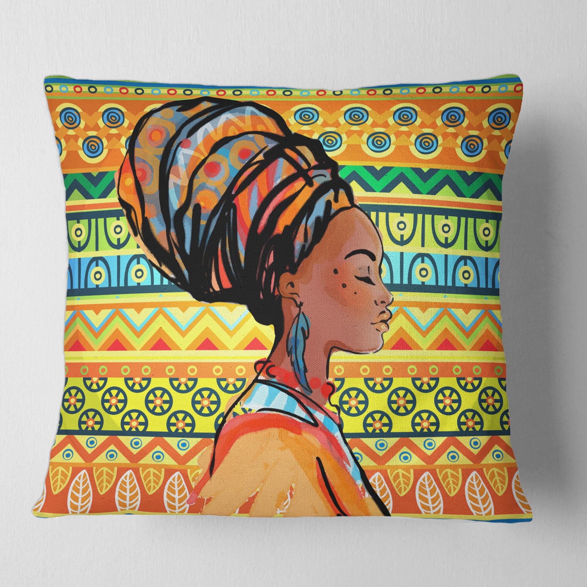 Designart 'African American Woman with Turban III' Modern Printed Throw Pillow