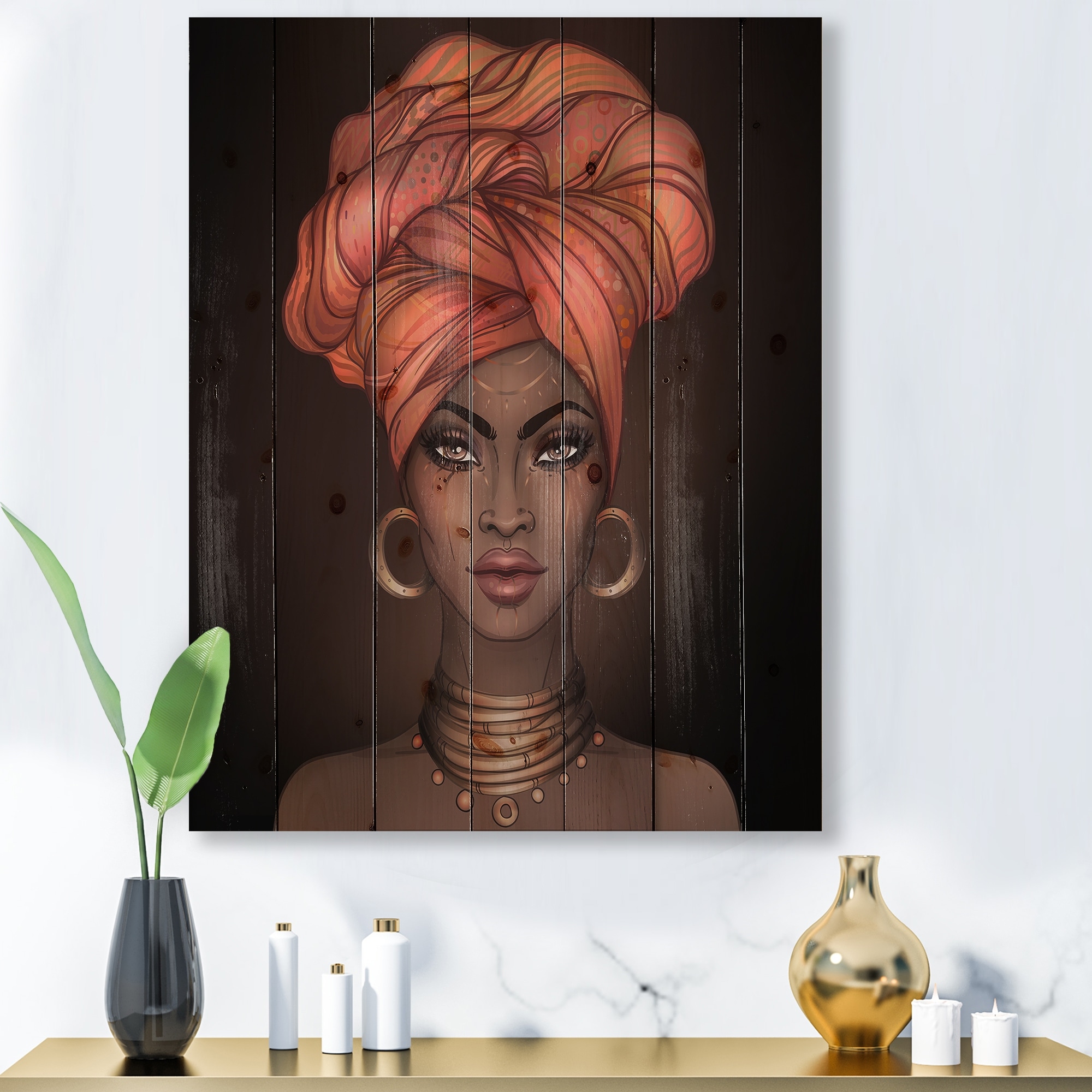 Designart 'African American Woman with Turban VI' Modern Print on Natural Pine Wood