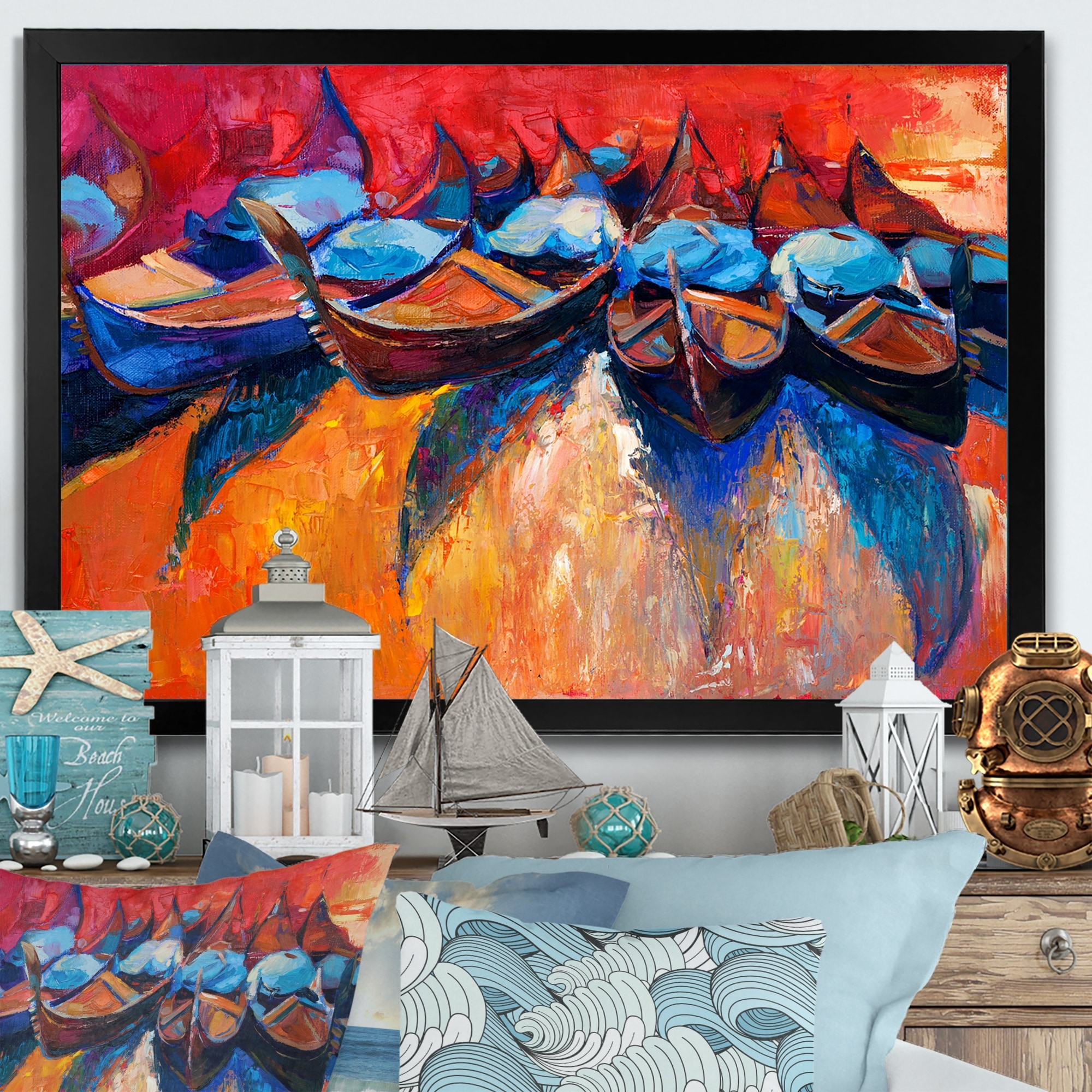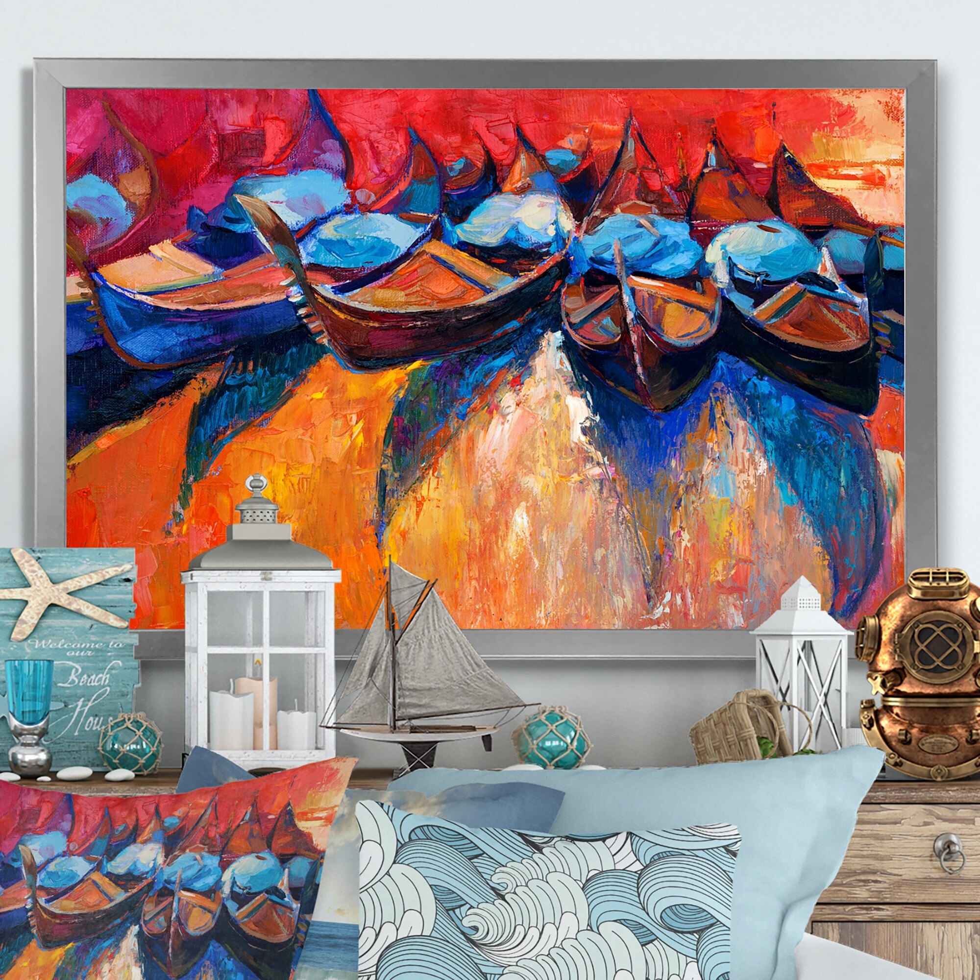 Designart "Gondolas In Venice Italy" Nautical & Coastal Framed Wall Decor