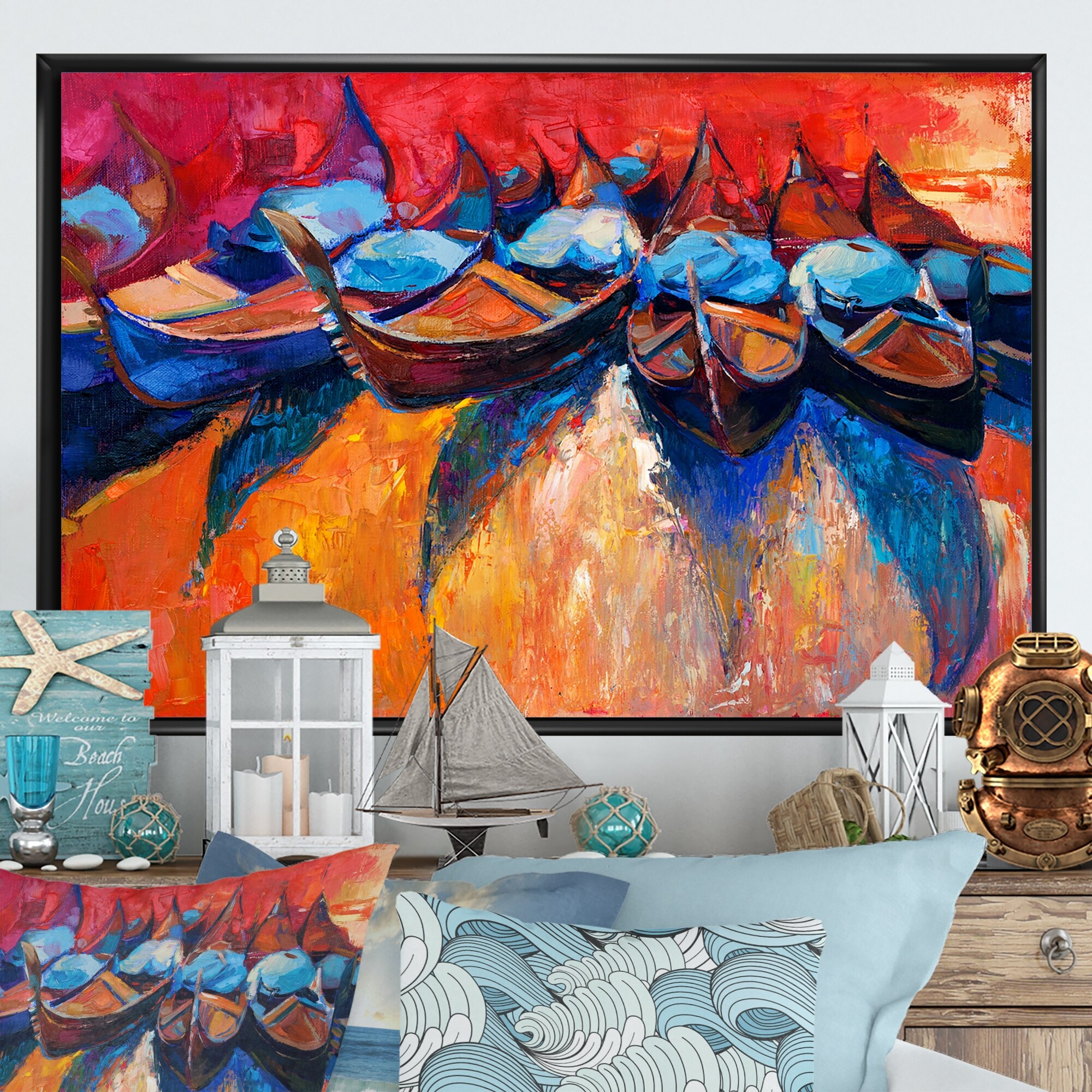 Designart "Gondolas In Venice Italy" Nautical & Coastal Framed Canvas Wall Decor