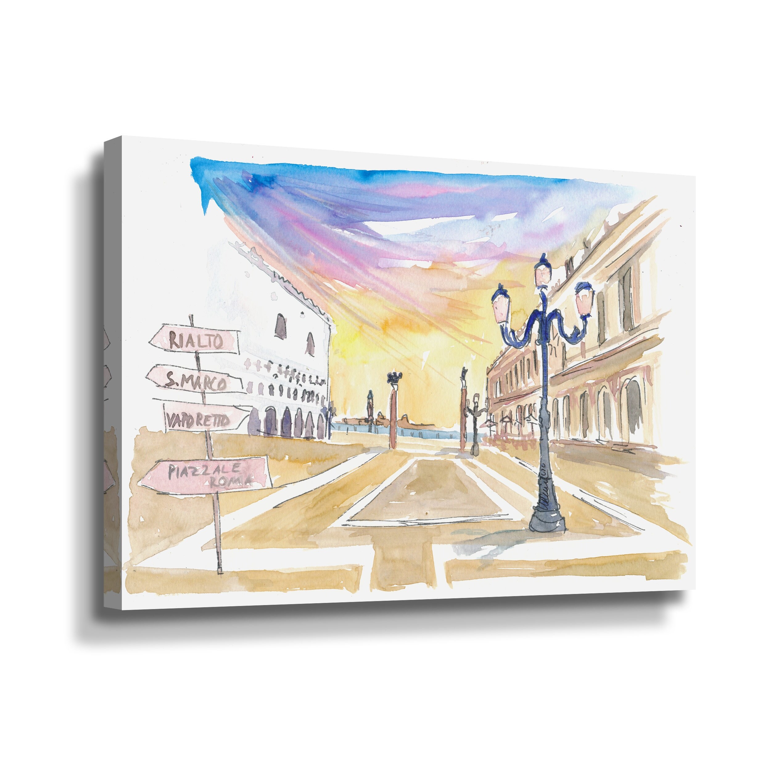 Vibrant Evening Venice Italy - Cityscape Artwork Print on Canvas - Multi-color