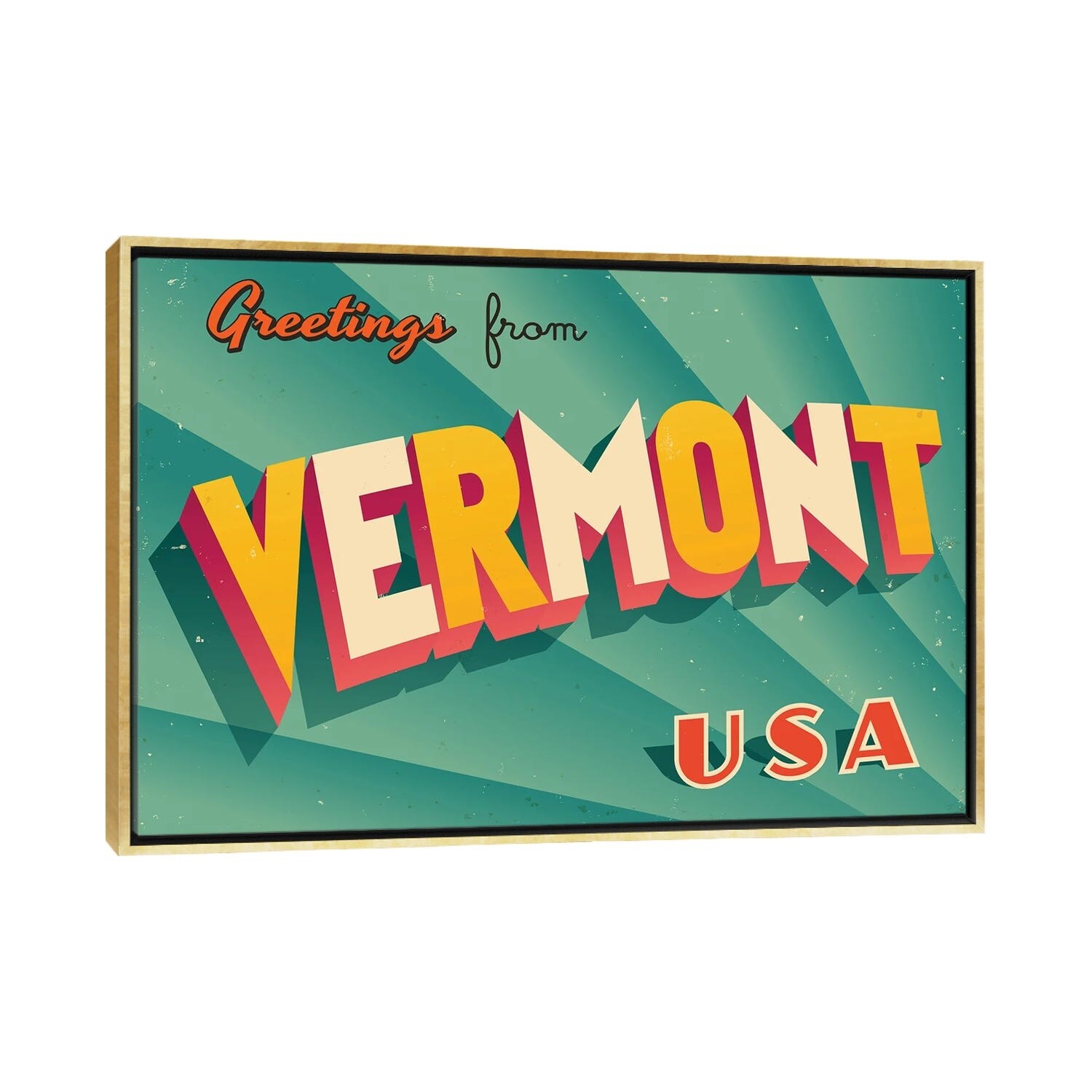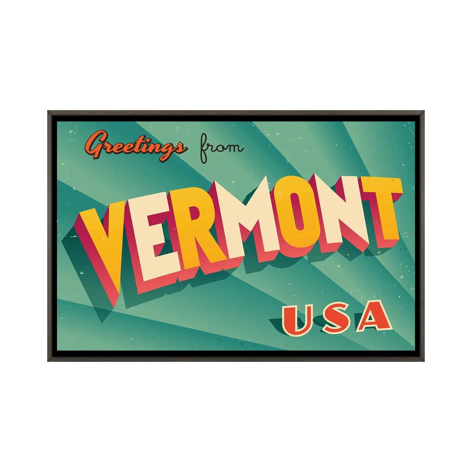 iCanvas "Greetings From Vermont" by RealCallahan Framed Canvas Print