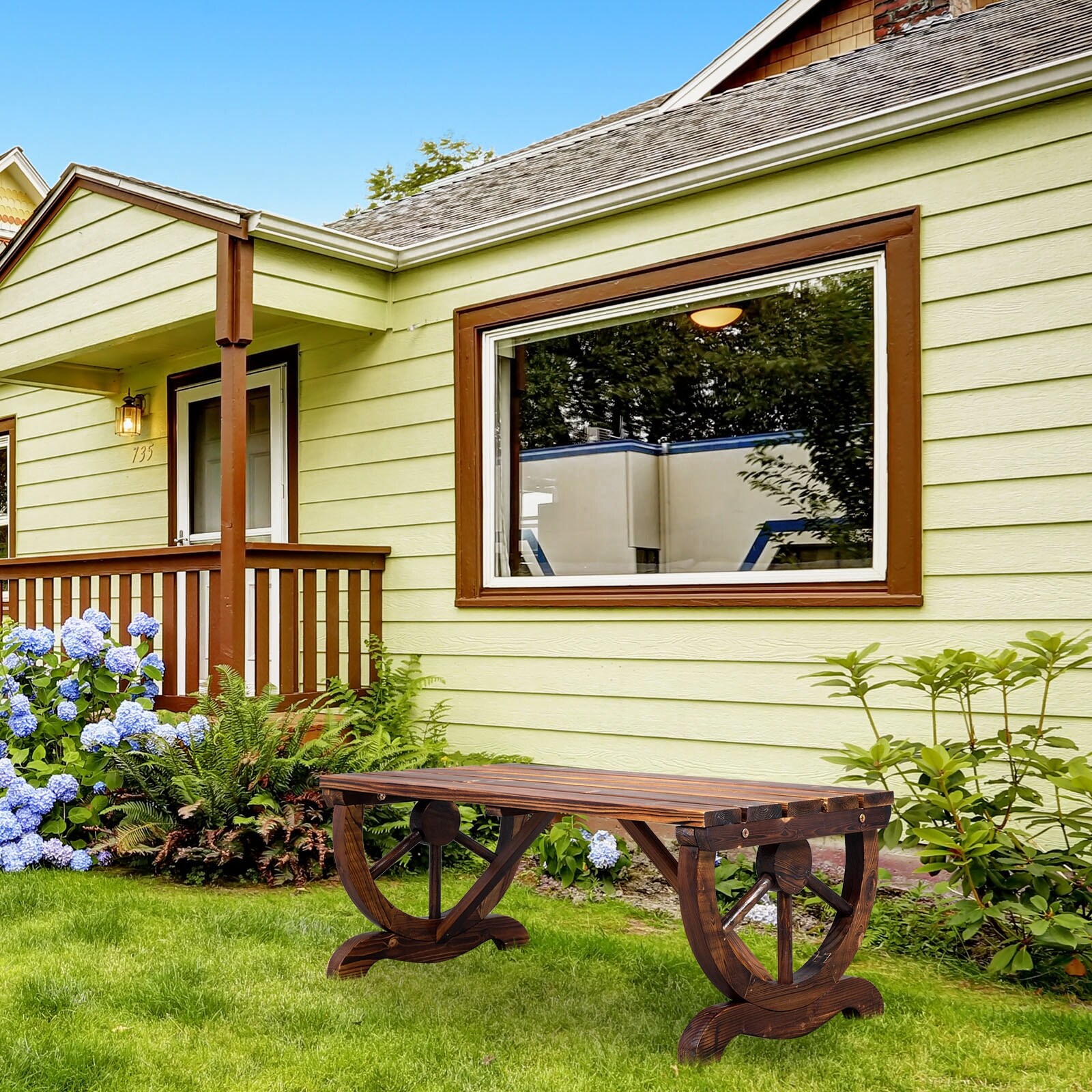 Outdoor Wagon Wheel Porch Bench