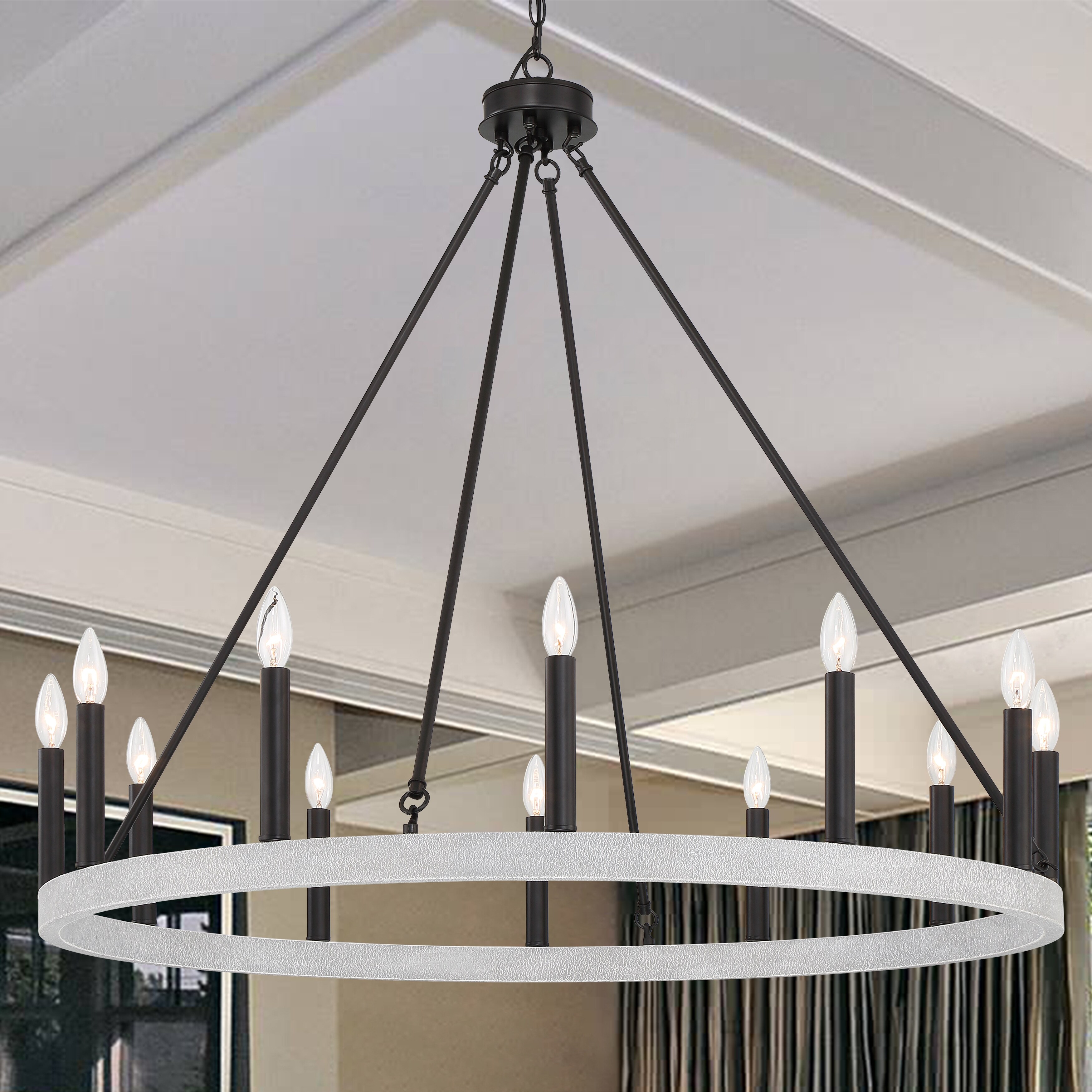 KAWOTI 12 - Light Dimmable Wagon Wheel Chandelier