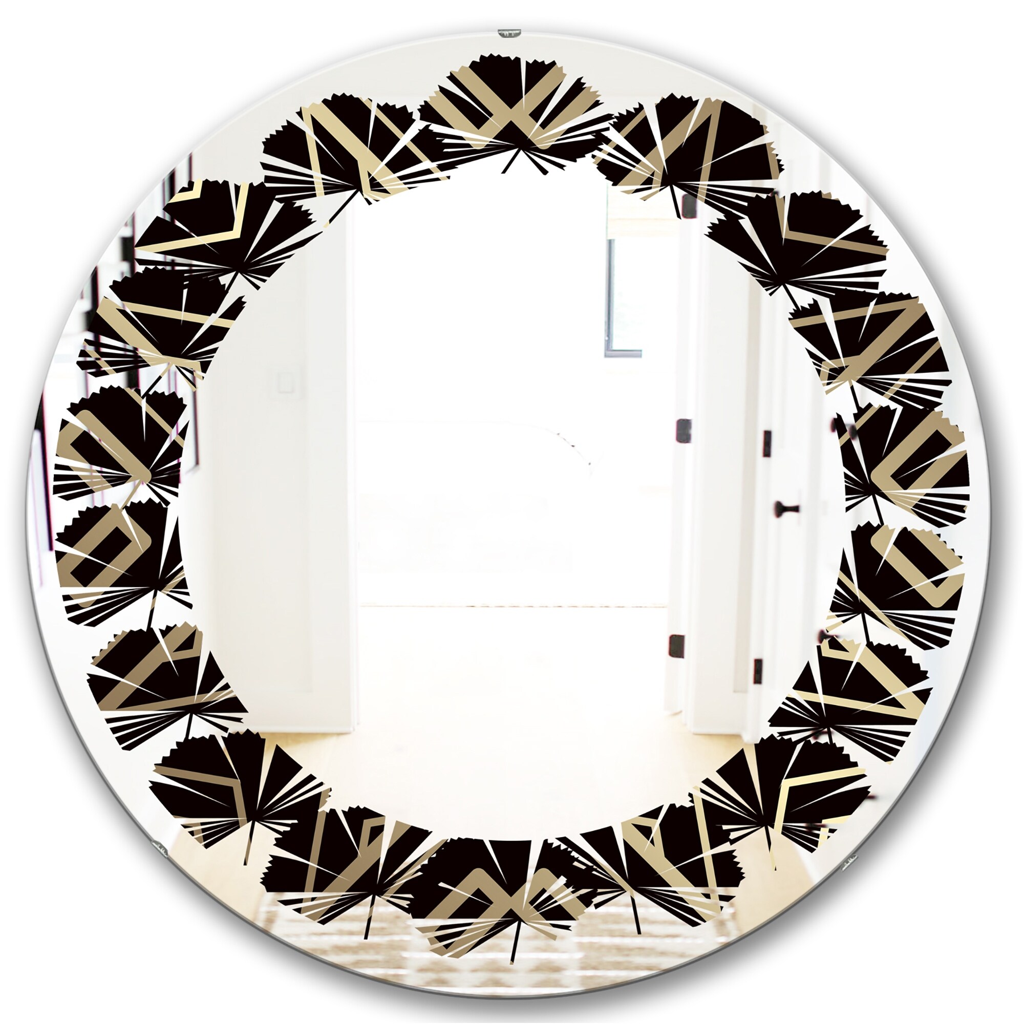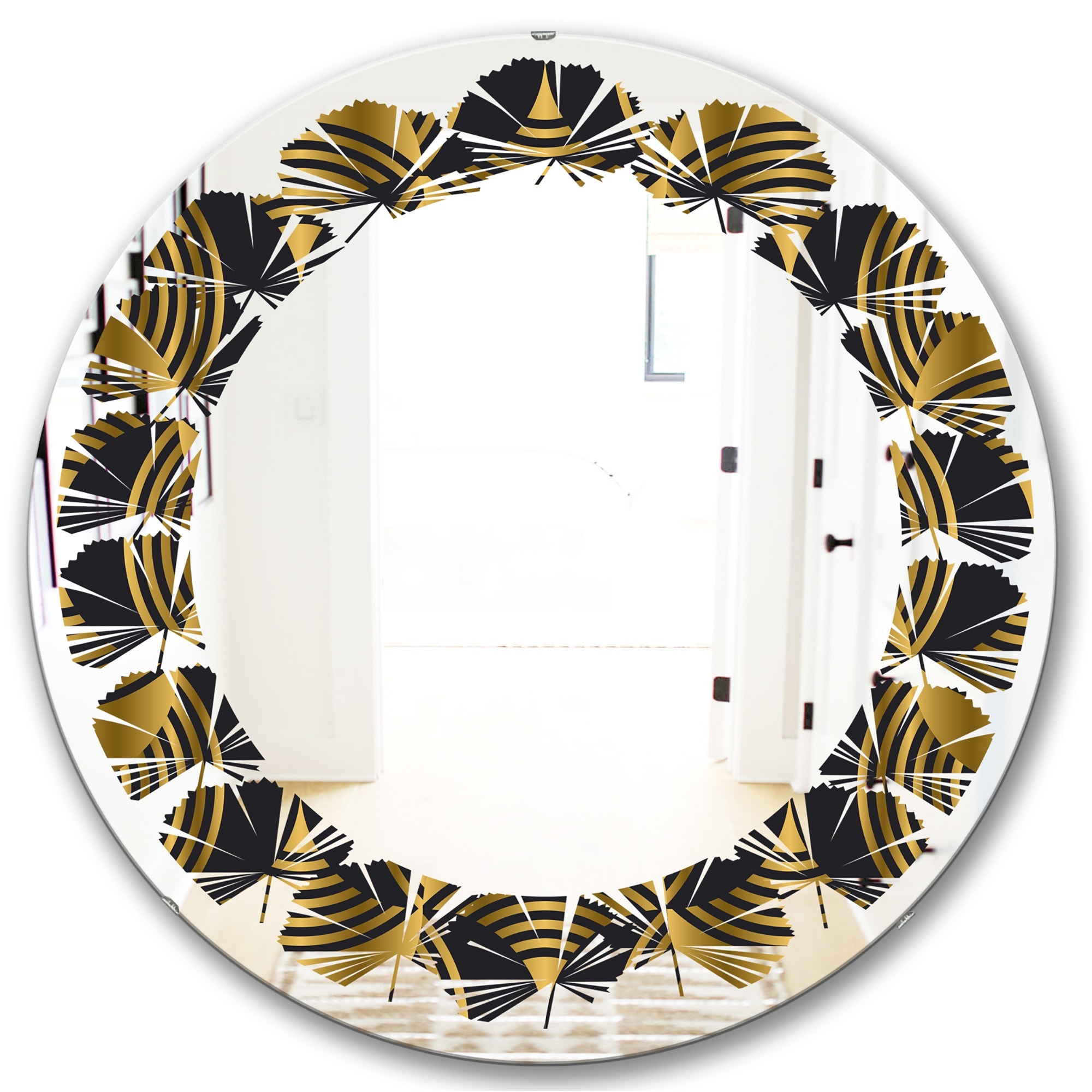 Designart 'Gold and Black Art Deco Pattern' Printed Modern Round or Oval Wall Mirror - Leaves