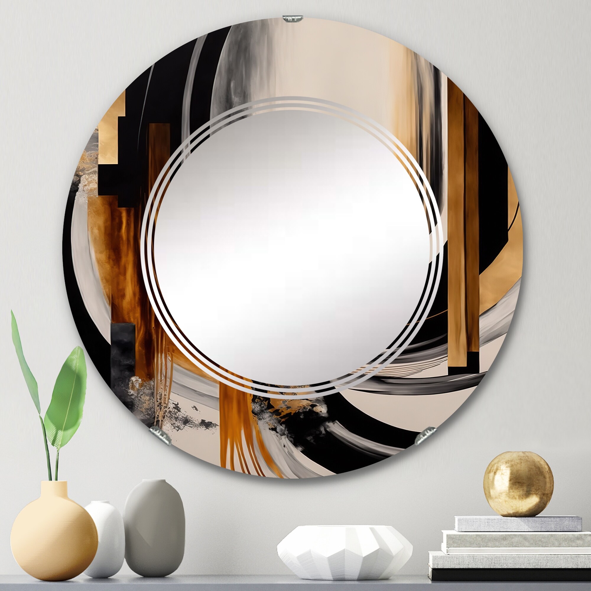 Designart 'Gold and Black Art Deco Pattern' Printed Modern Round or Oval Wall Mirror - Whirl