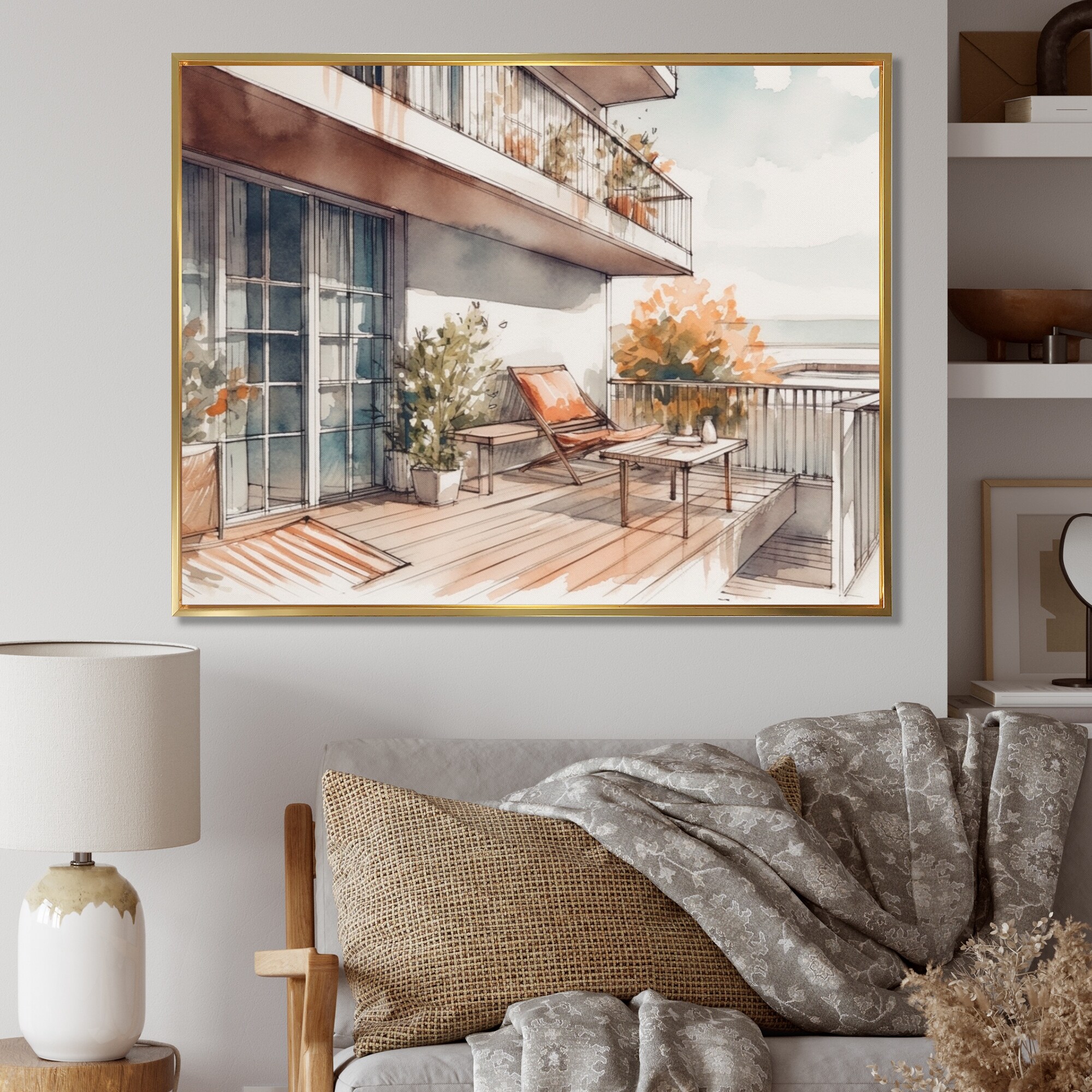 Designart "Capturing The Bliss of a Summer Terrace Ii" City Art Deco Framed Wall Art Prints