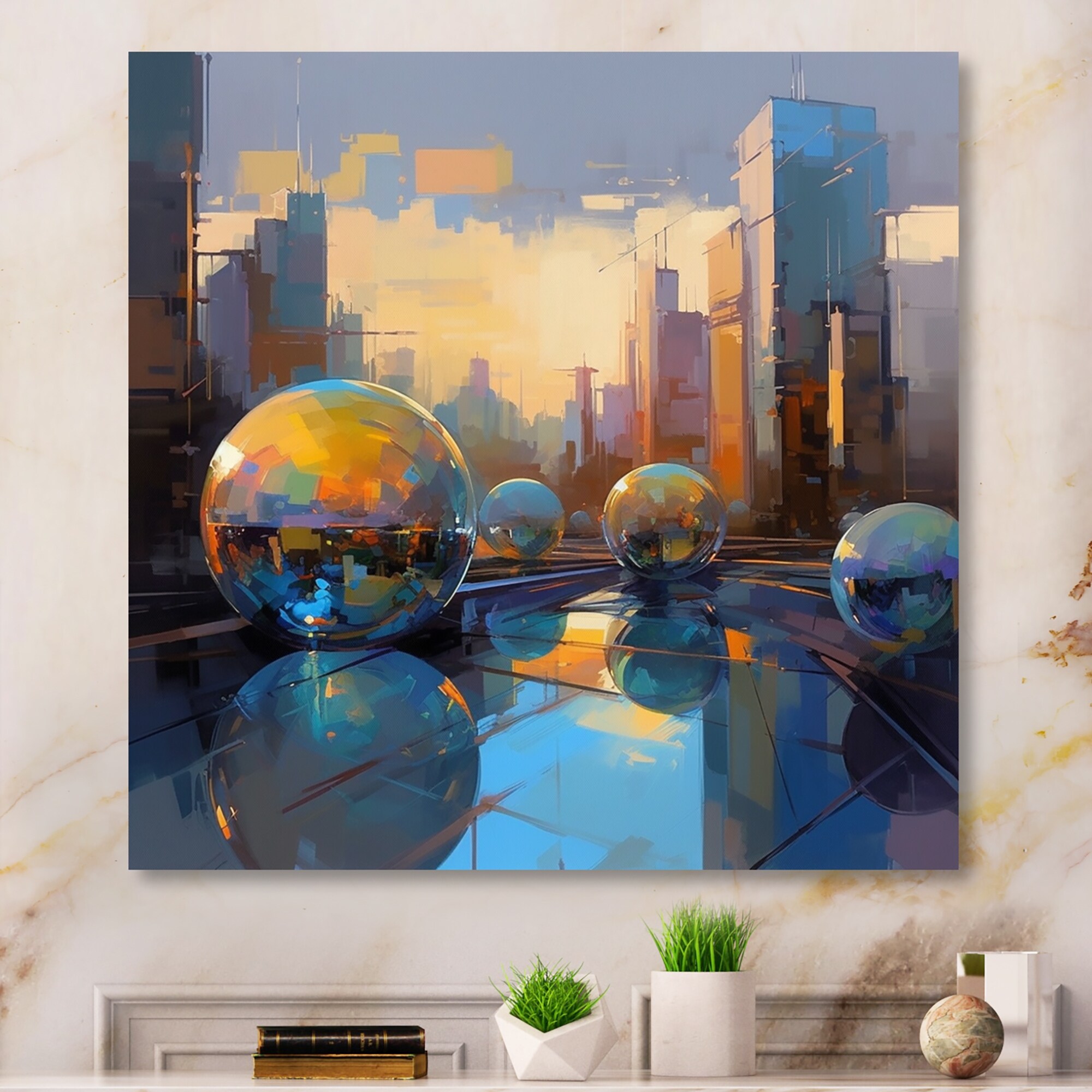 Designart "Blue And Yellow Modernist Cityscapes II" City Art Deco Metal Wall Art
