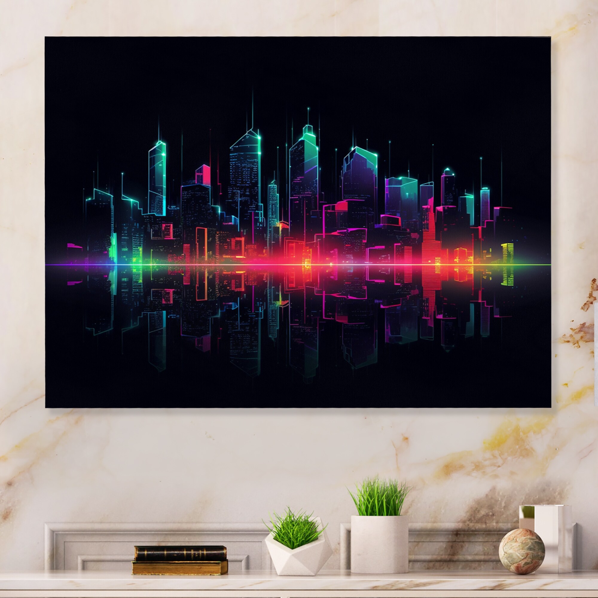 Designart "Pink And Green Cityscapes in Vivid Expression I" City Art Deco Metal Wall Art