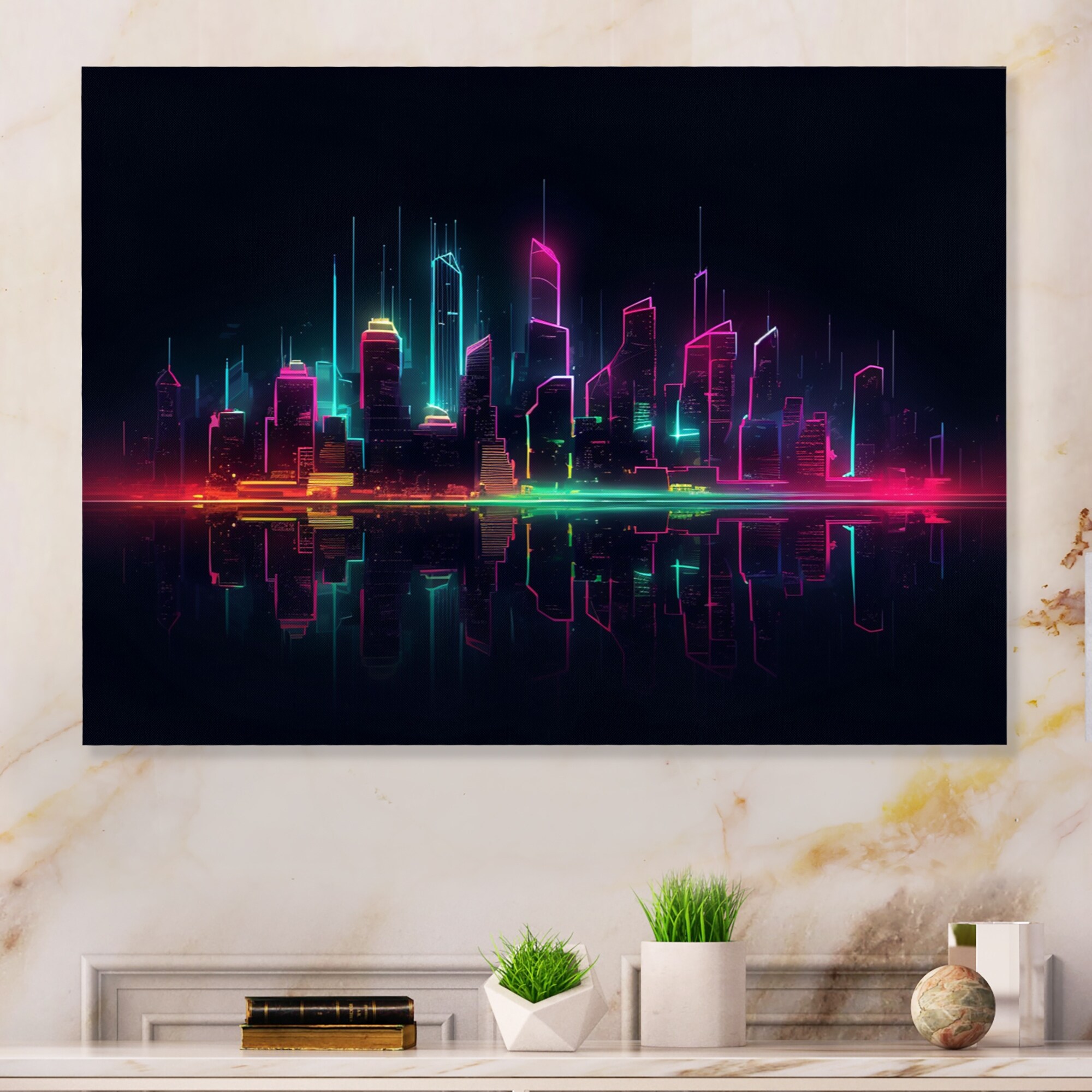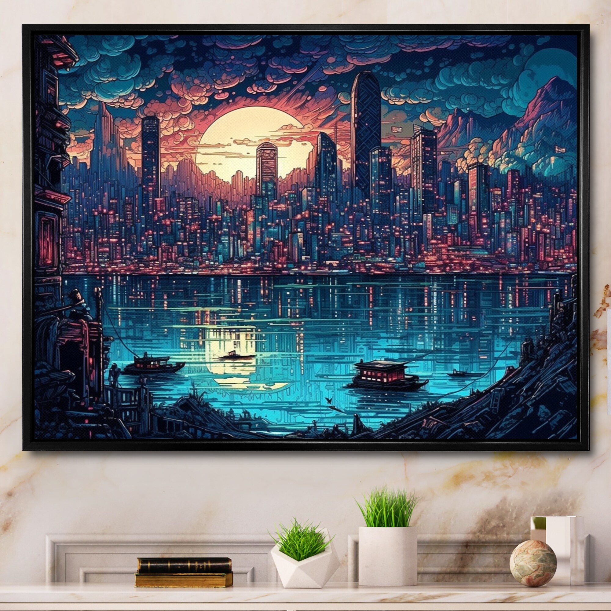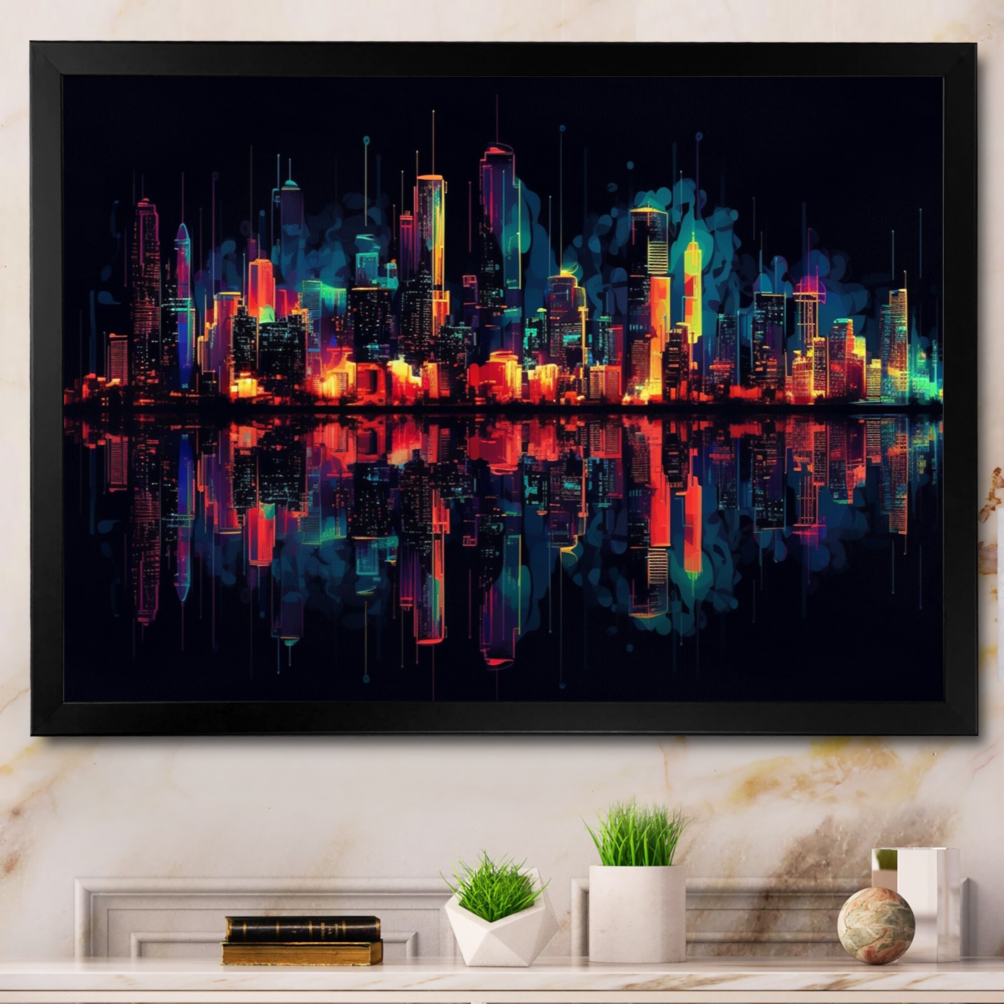 Designart "Colorful Whimsical Skyline Ii" City Art Deco Framed Canvas Wall Art