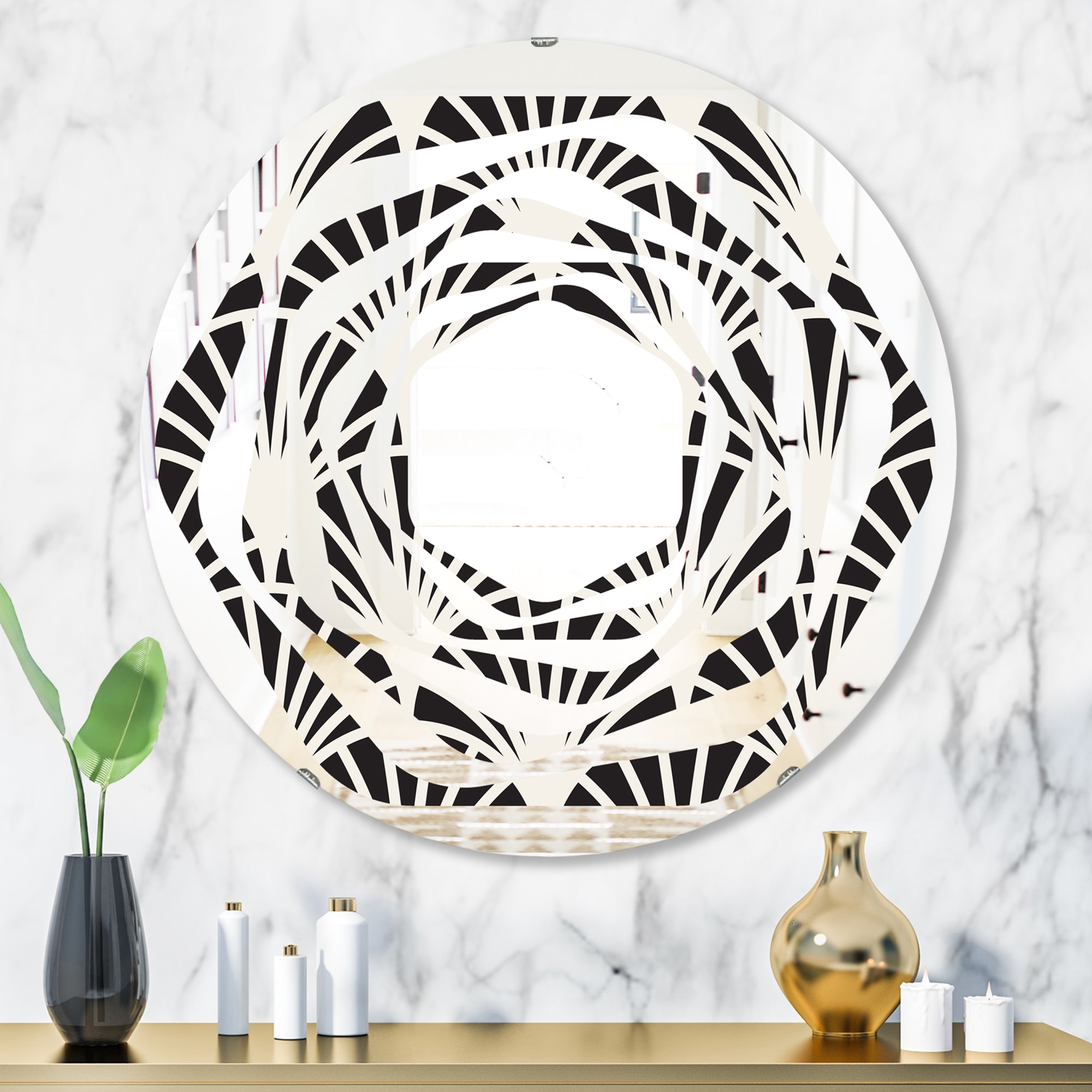 Designart 'Art Deco Seal pattern' Printed Modern Round or Oval Wall Mirror - Space
