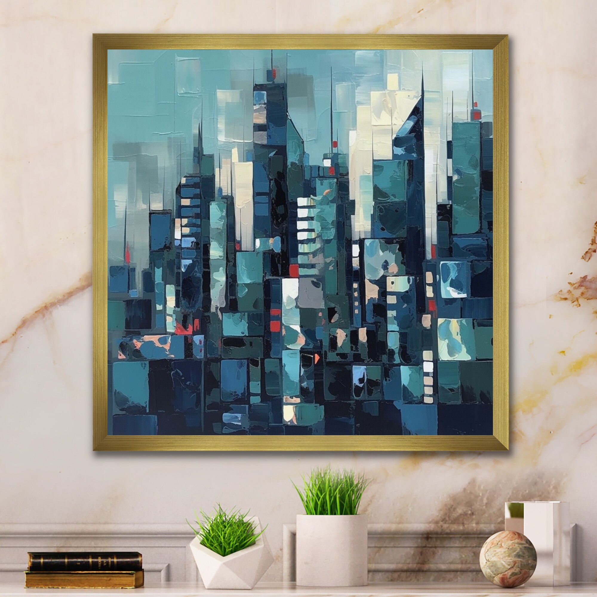 Designart "Blue And Green Cityscape Essence" City Art Deco Framed Canvas Wall Art