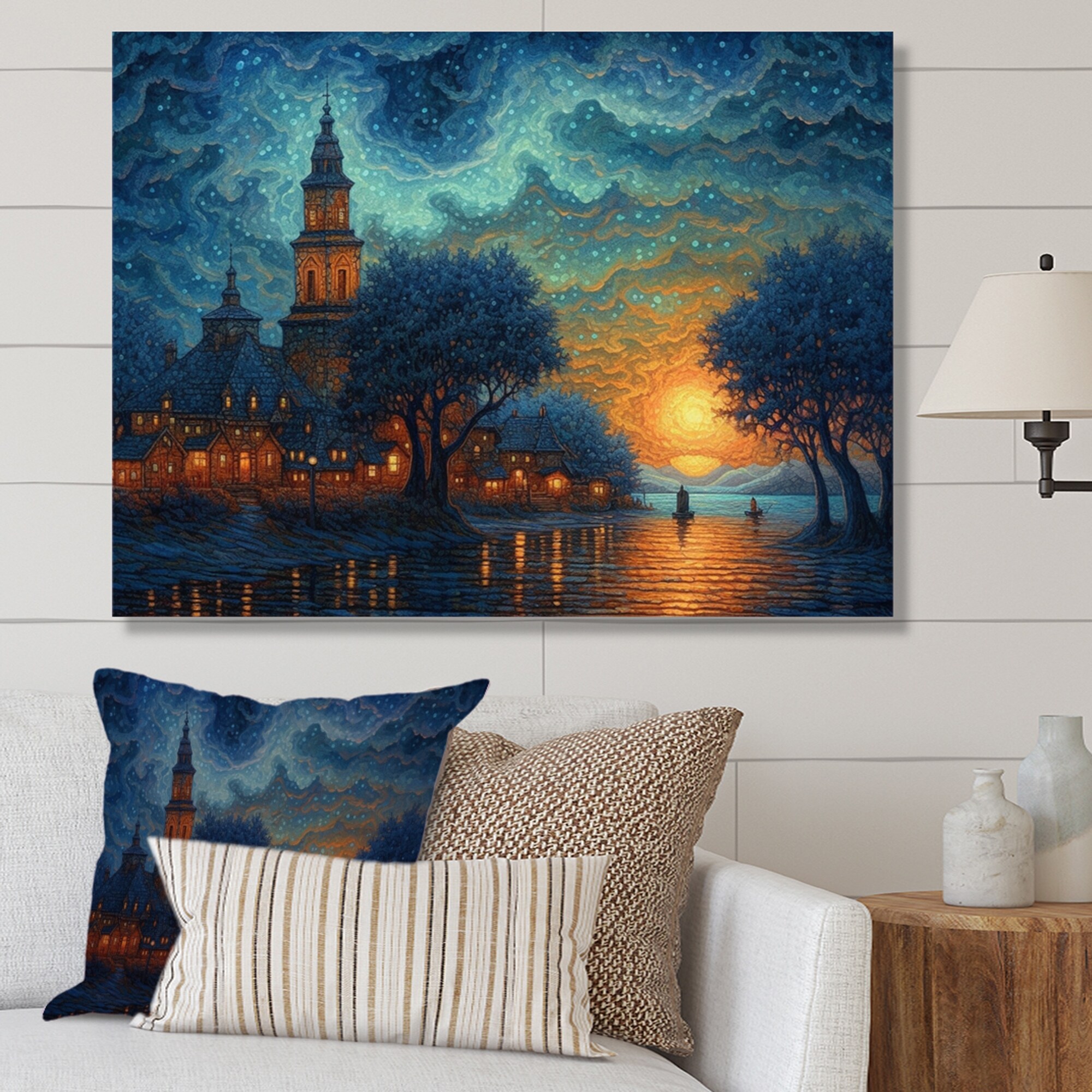 Designart "Blue And Yellow Drama of a Stormy Night City Ii" City Art Deco Wall Art Prints