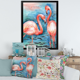 Designart "Pink Flamingos in Blue Water I" Farmhouse Framed Art Print