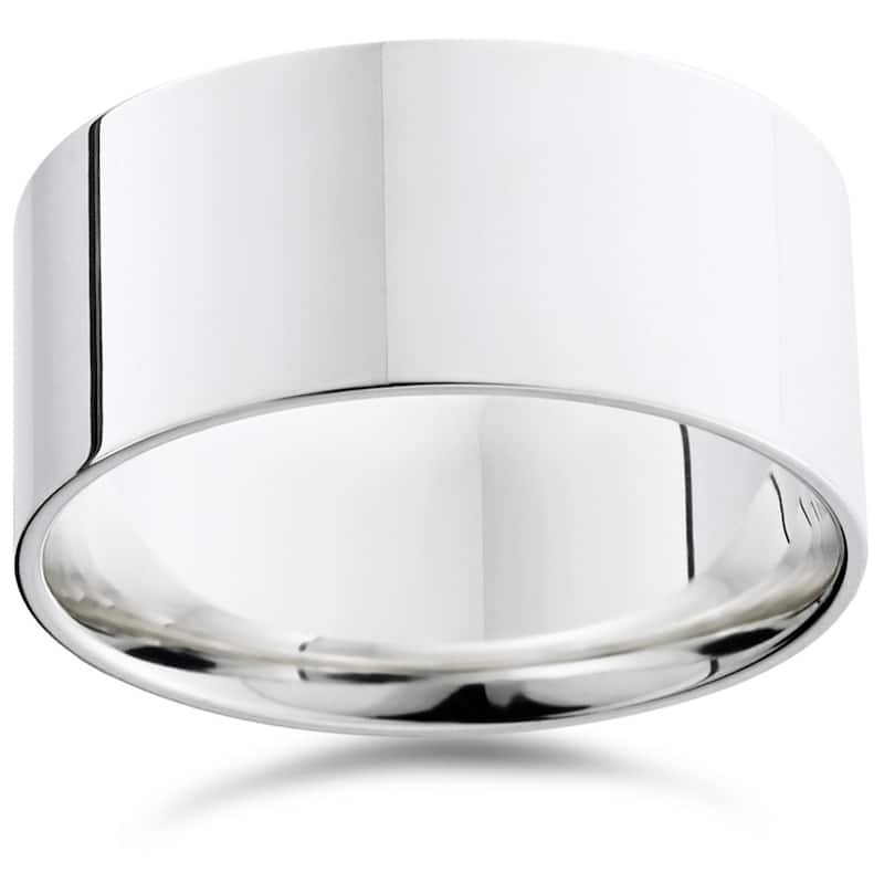 Pompeii3 950 Platinum Plain High Polished Ring 10mm Flat Wedding Band - White