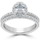14k White Gold 1 1/4 ct Oval Halo Diamond Engagement Wedding Ring Set