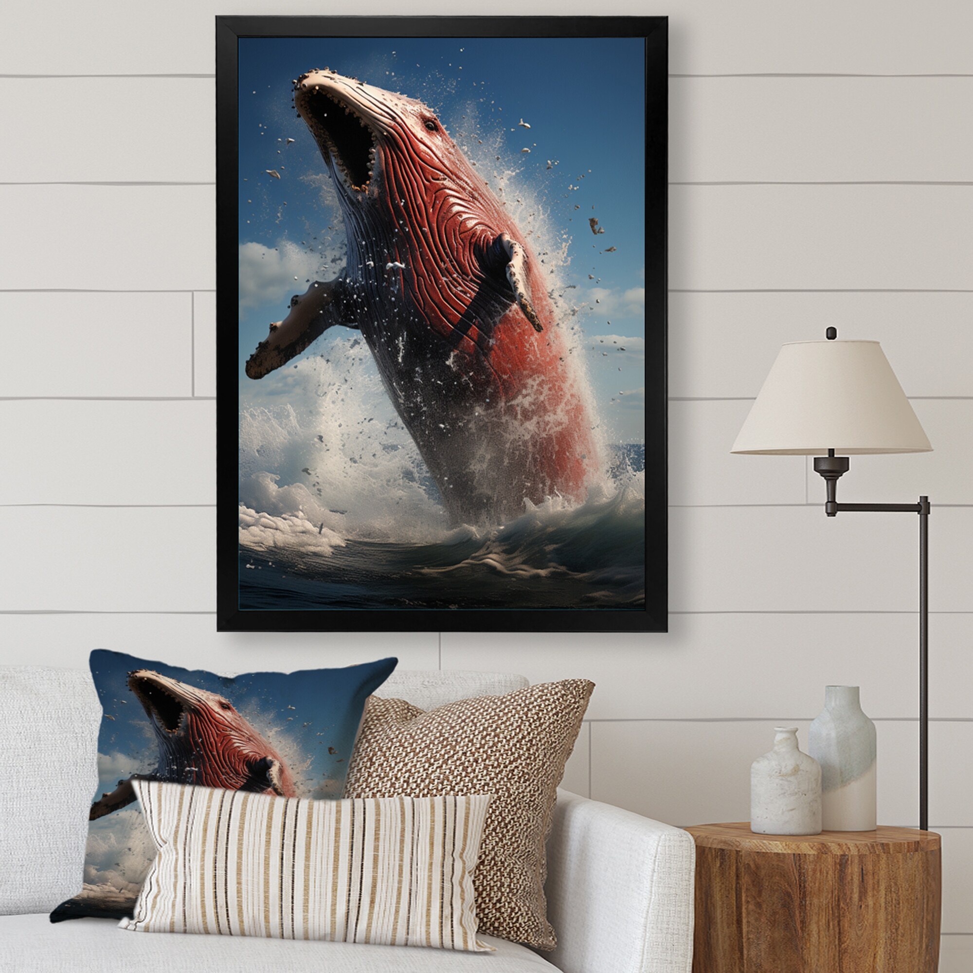 Designart "Coastal Whale Watching Out of Ocean II" Animal Whale Framed Canvas Print