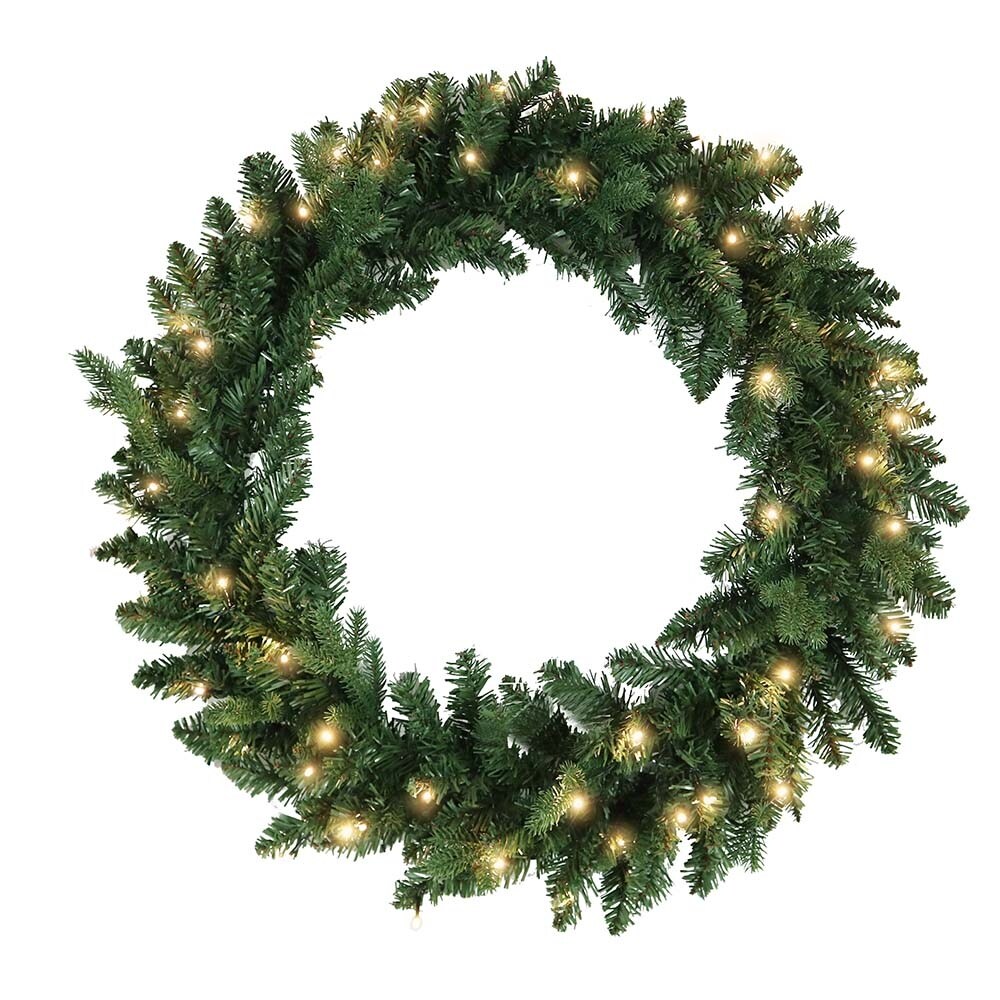 24-inch Classical Collection Wreath with Battery-operated Warm White LED Lights
