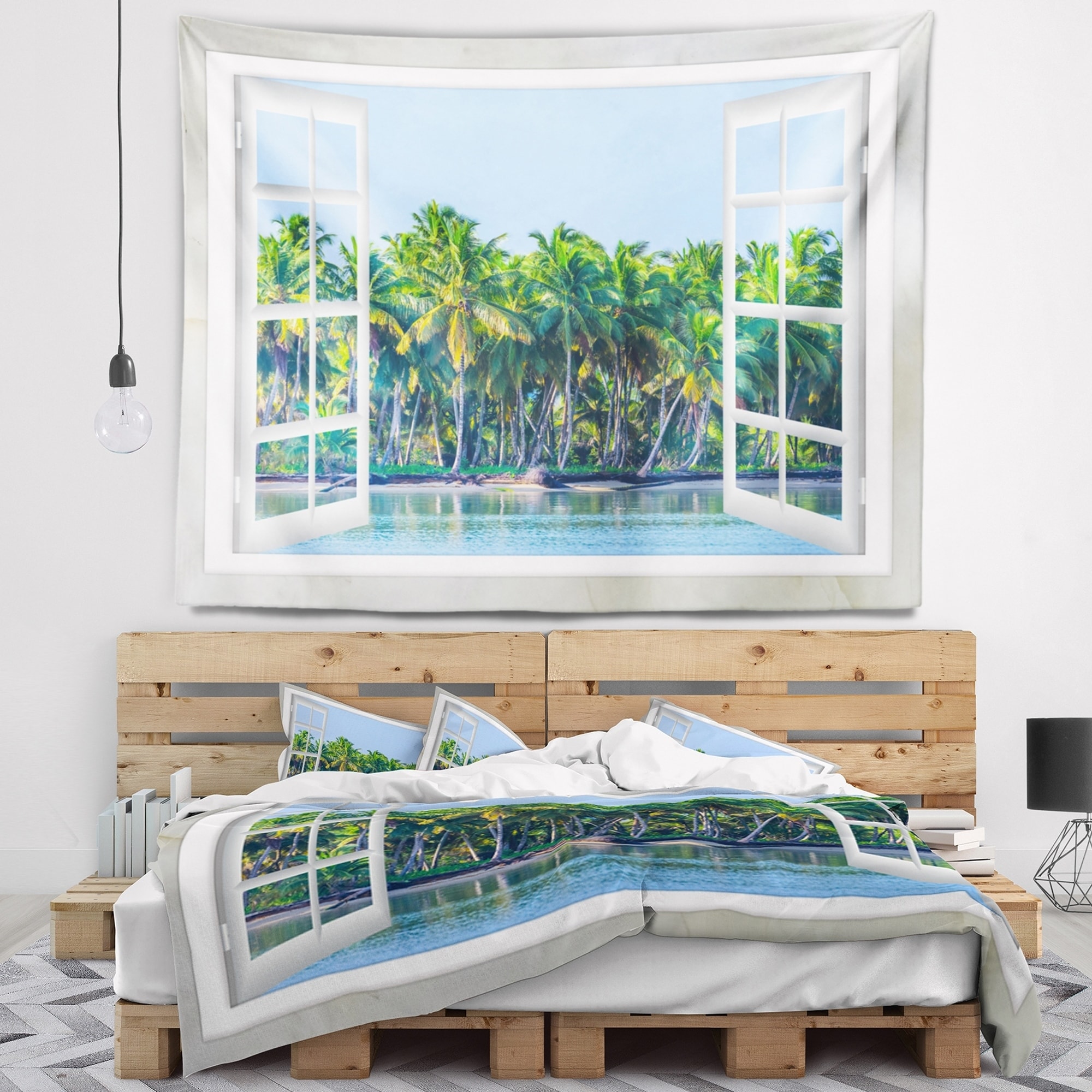 Designart 'Open Window to Seashore Palms' Seashore Wall Tapestry