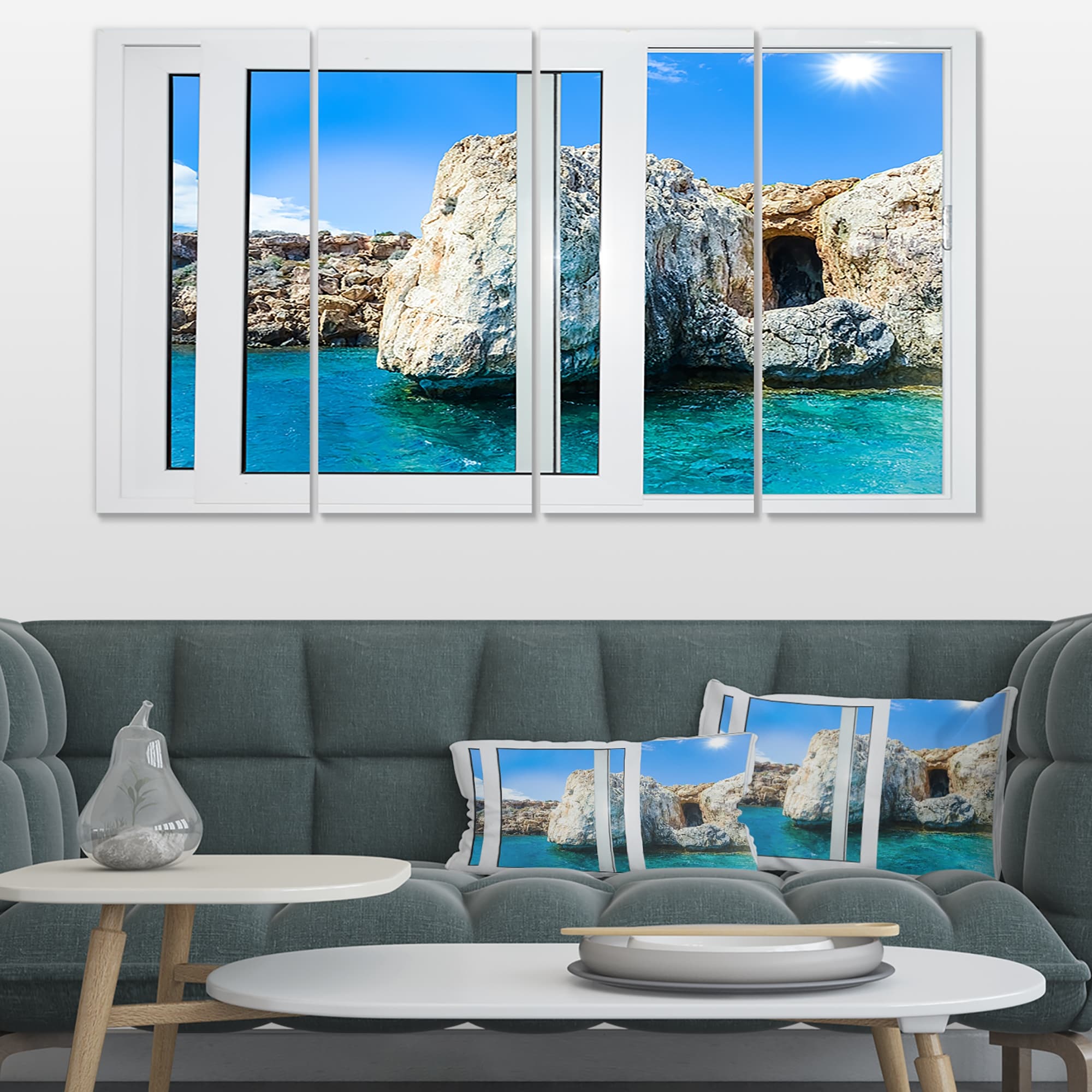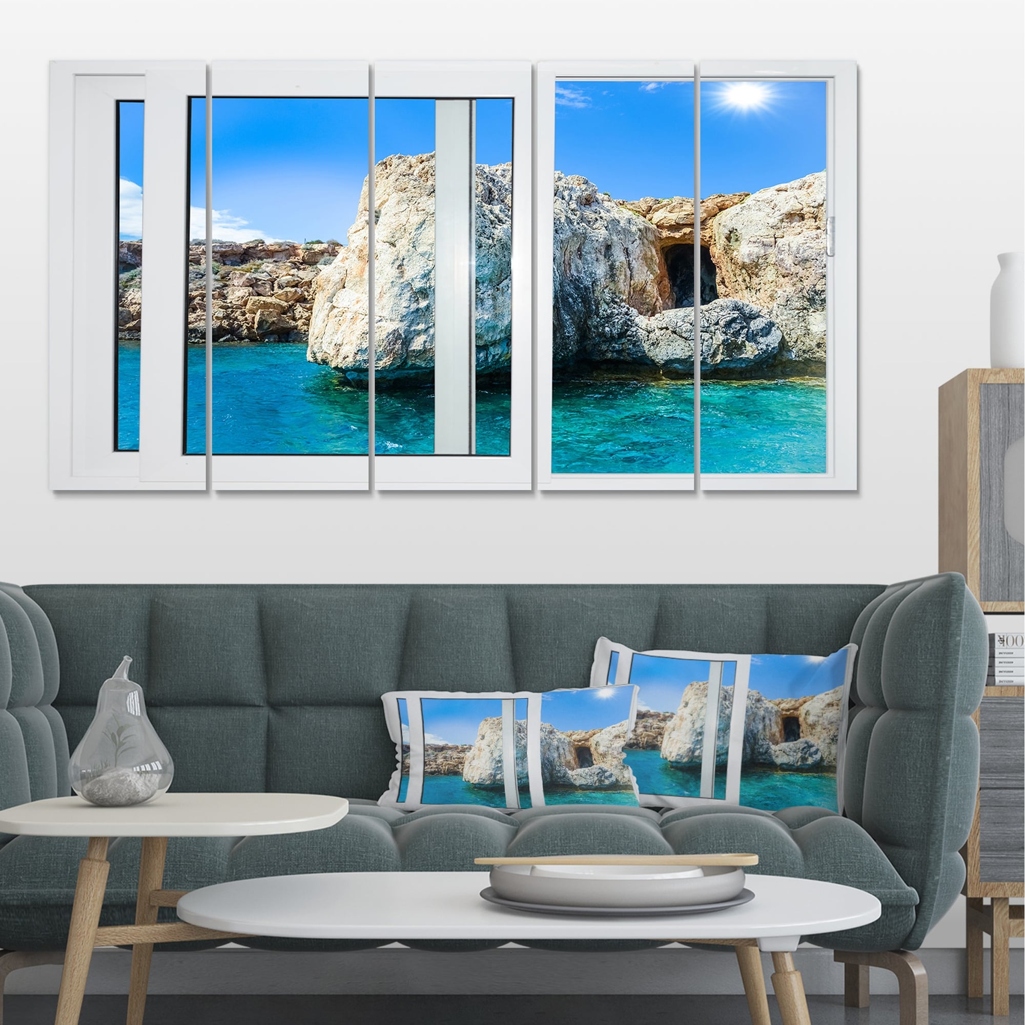 Designart "Open Window to Gorgeous Seashore" Modern Seascape Canvas Artwork