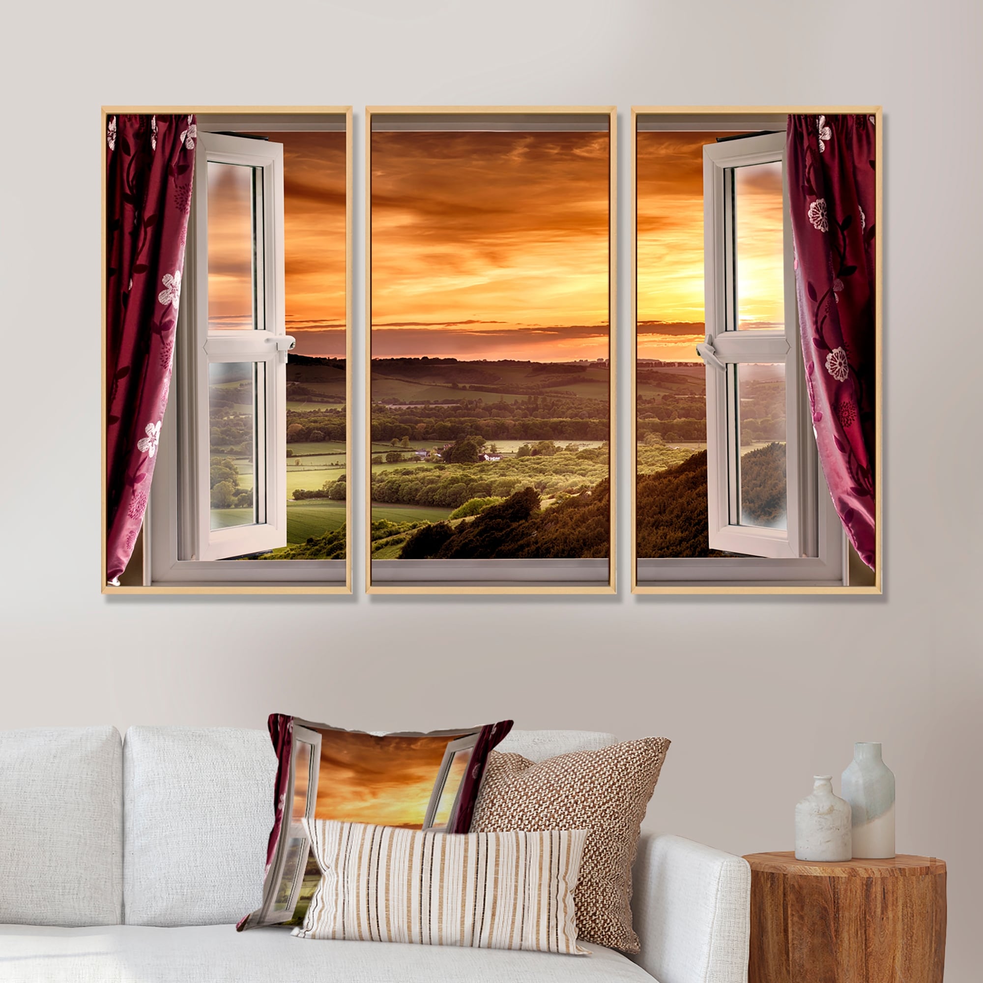 Designart "Open Window to Rural Landscape" Landscape Framed Wall Decor Set of 3 - 4 Colors of Frames