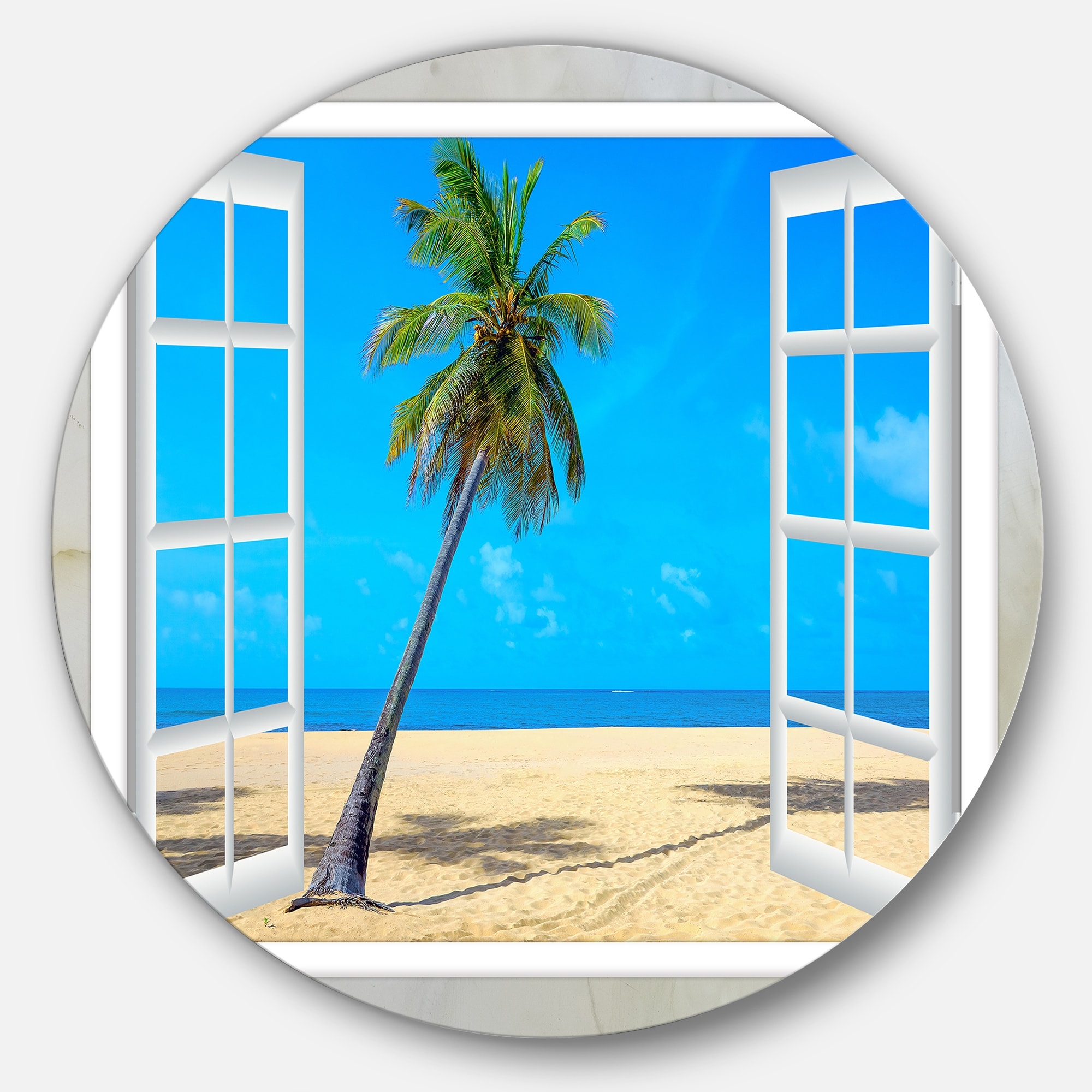 Designart 'Open Window to Seashore Palms' Seashore Circle Wall Art