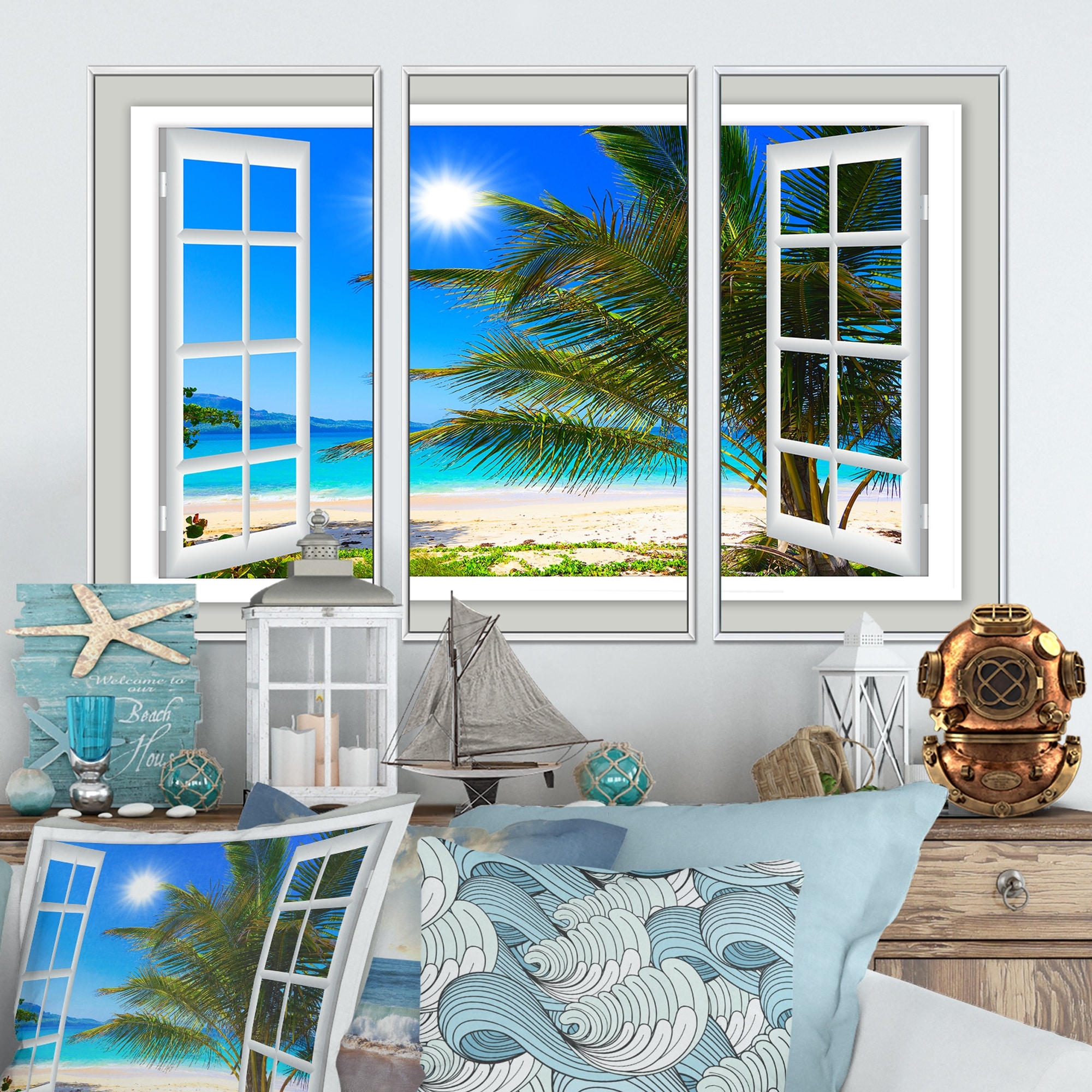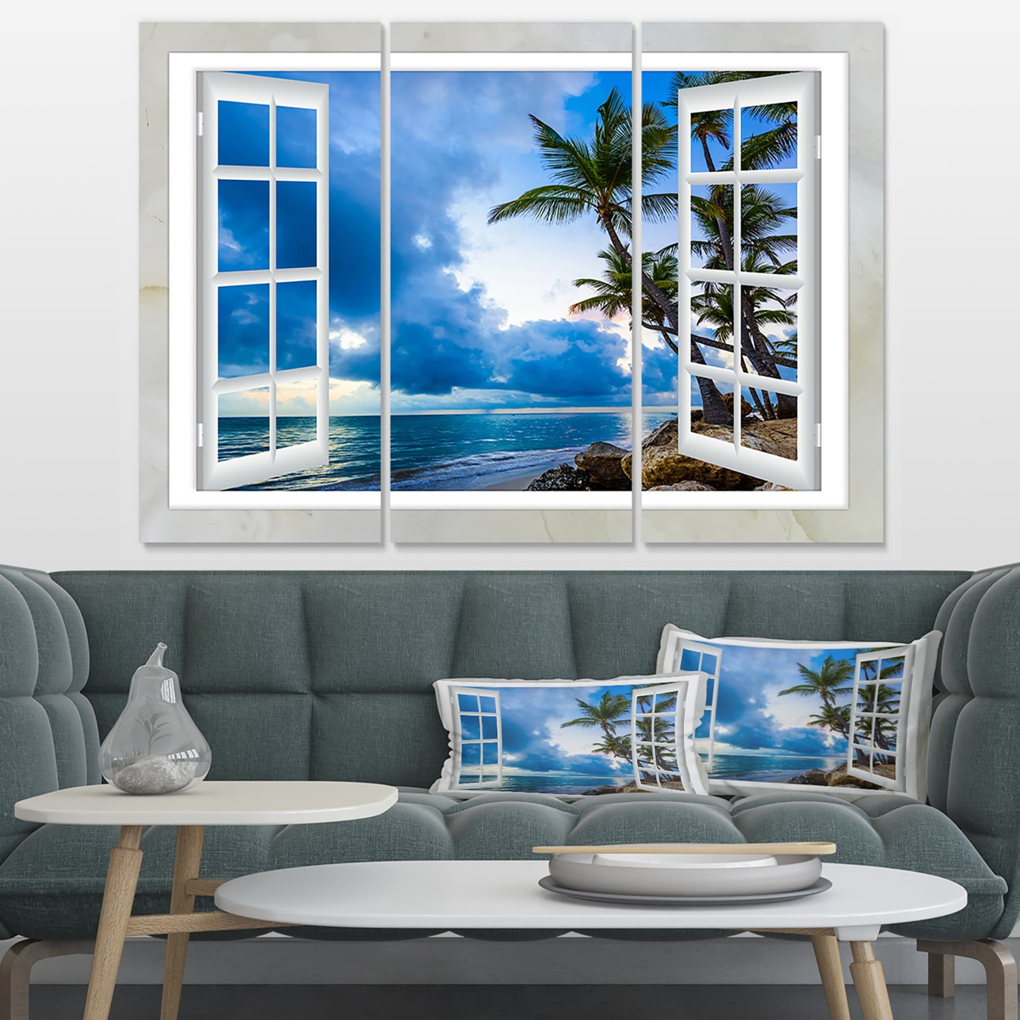 Open Window to Seashore Palms - Extra Large Seashore Canvas Art