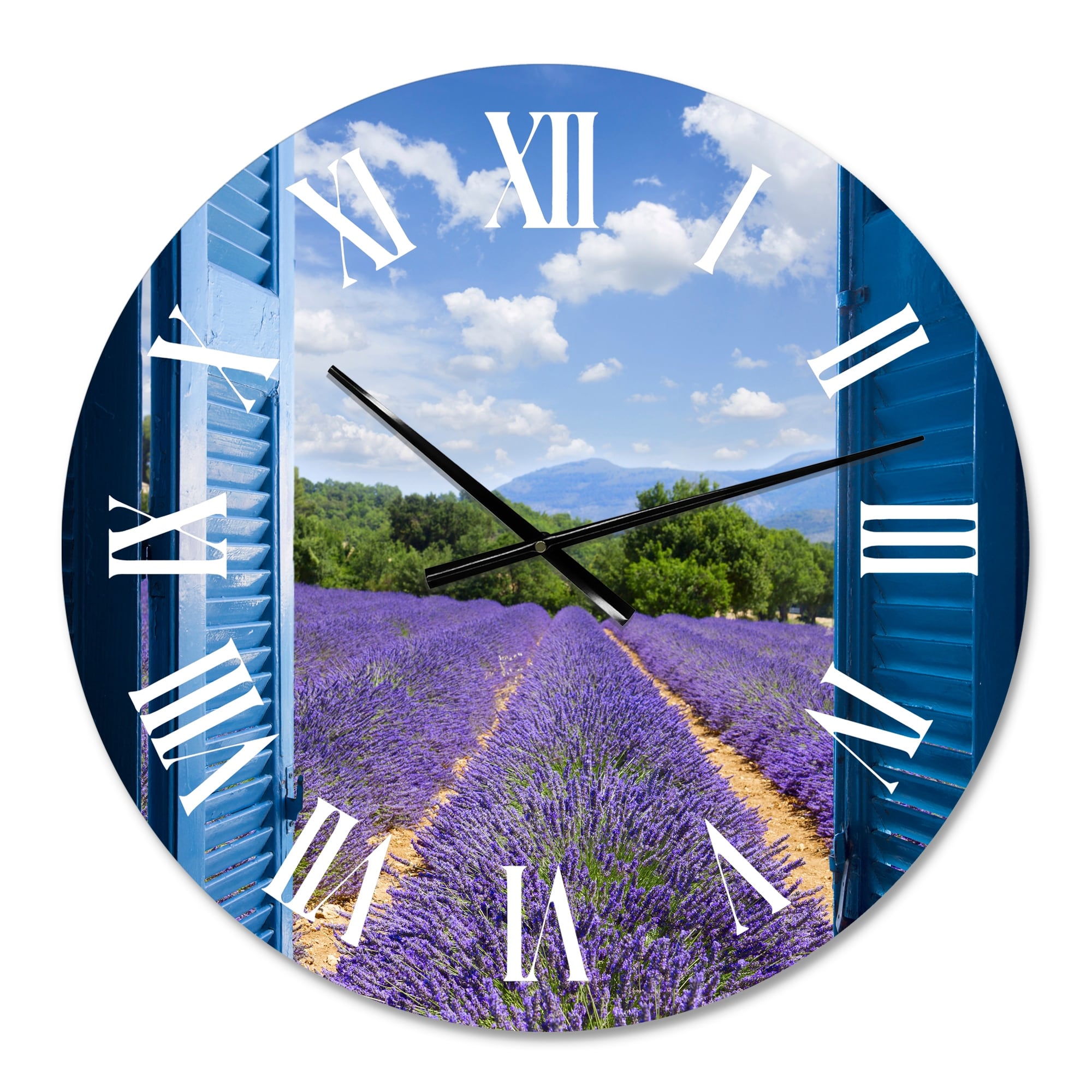 Designart 'Lavender Field Through Blue Open Cottage Window' Farmhouse wall clock