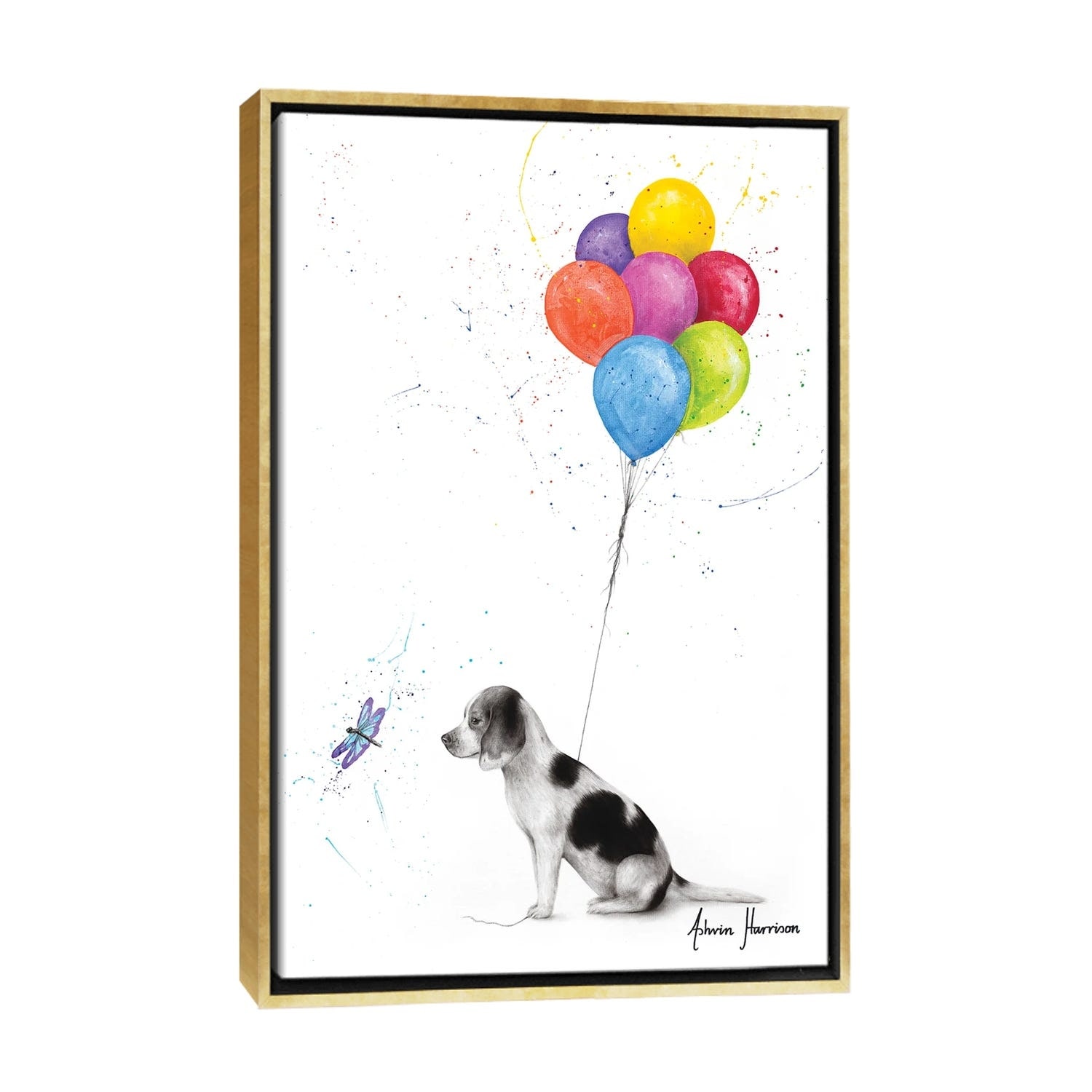 iCanvas "A Dog'S Dragonfly Wish" by Ashvin Harrison Framed