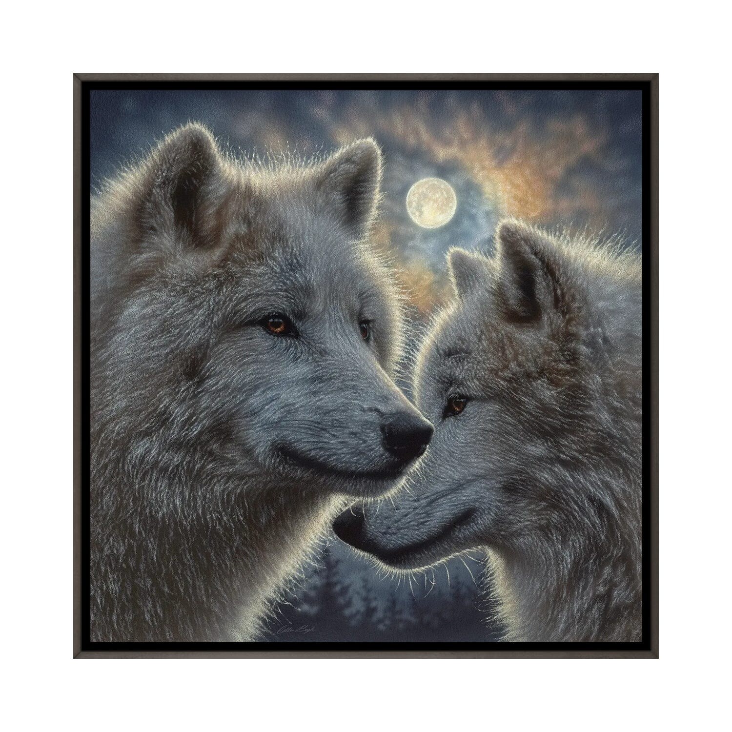iCanvas "Moonlight Wolf Mates" by Collin Bogle Framed