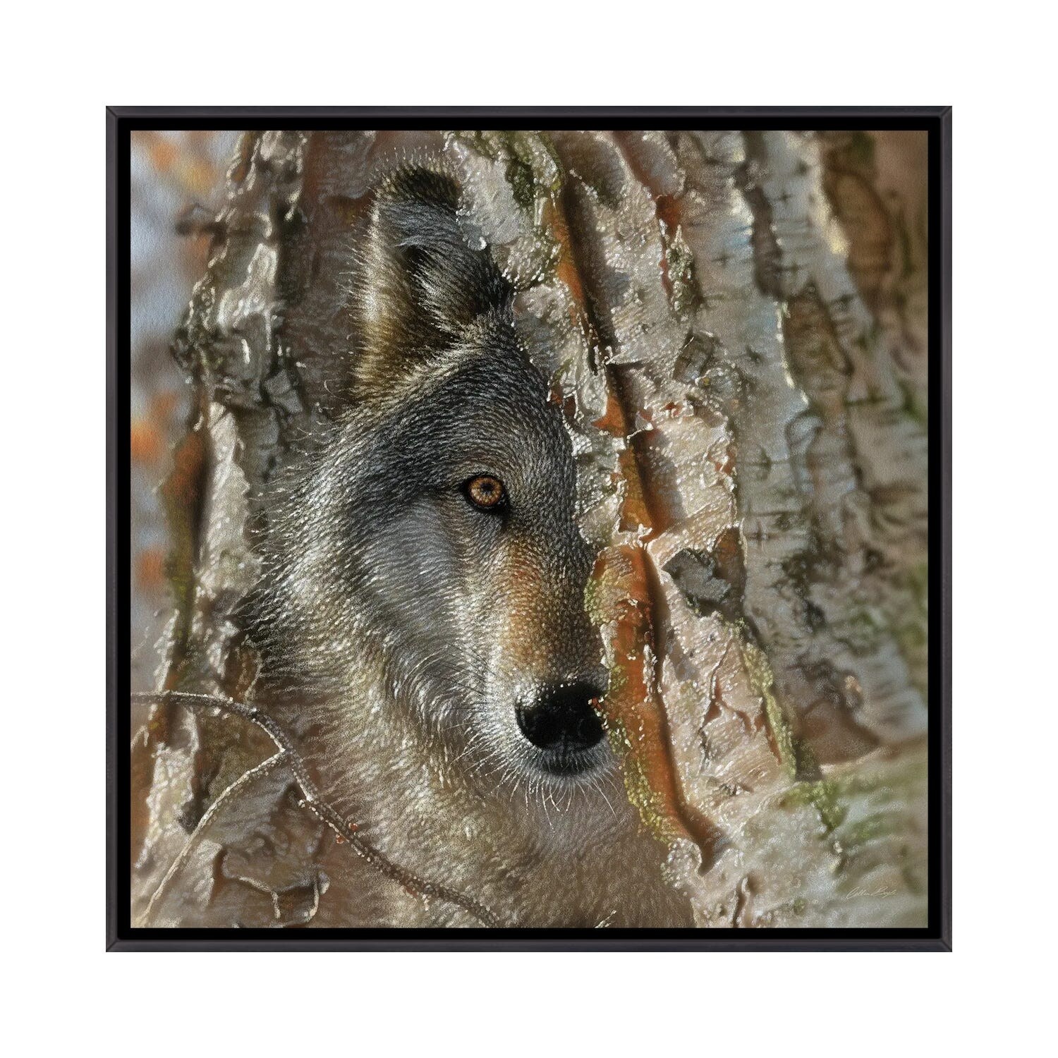 iCanvas "Close Encounter Wolf Square" by Collin Bogle Framed