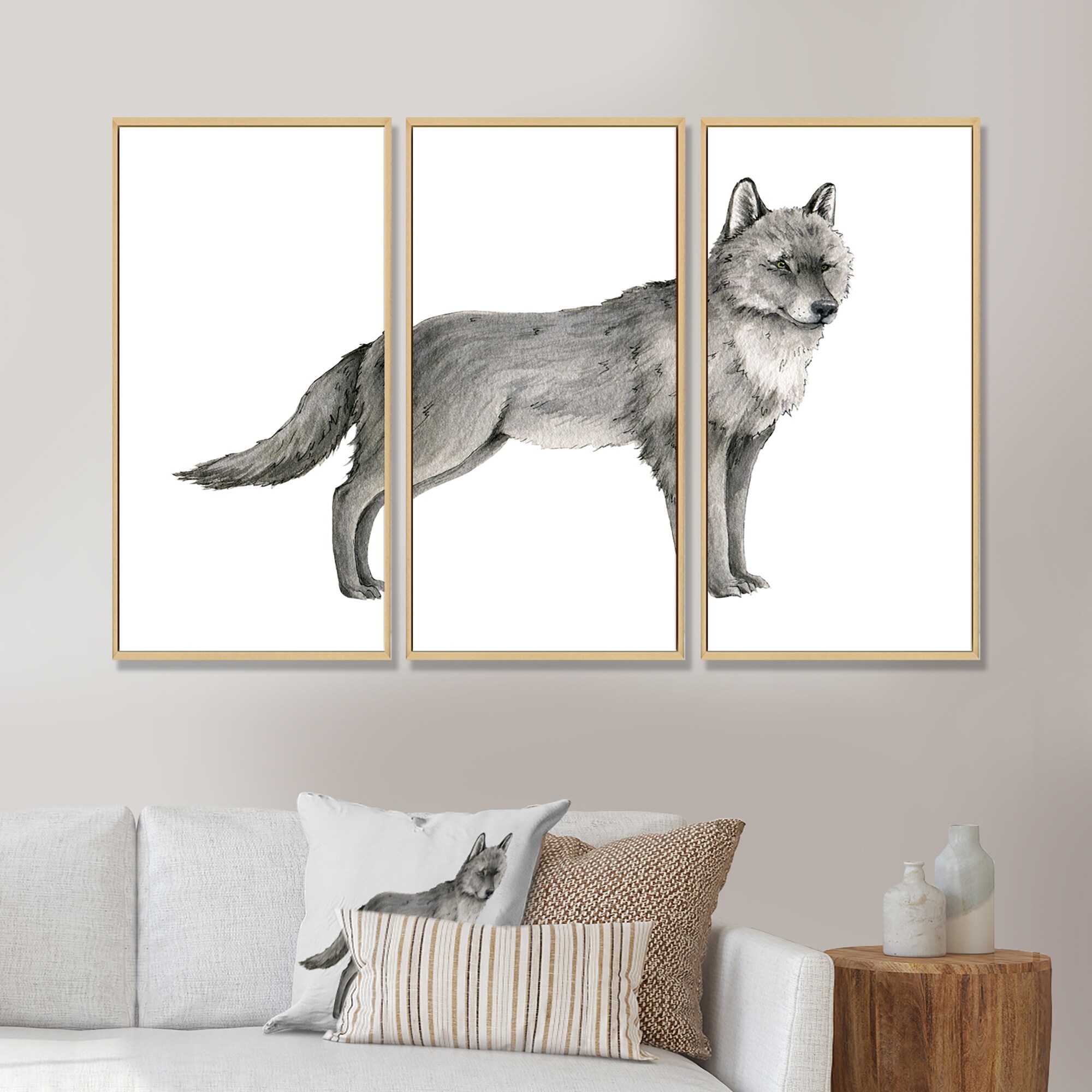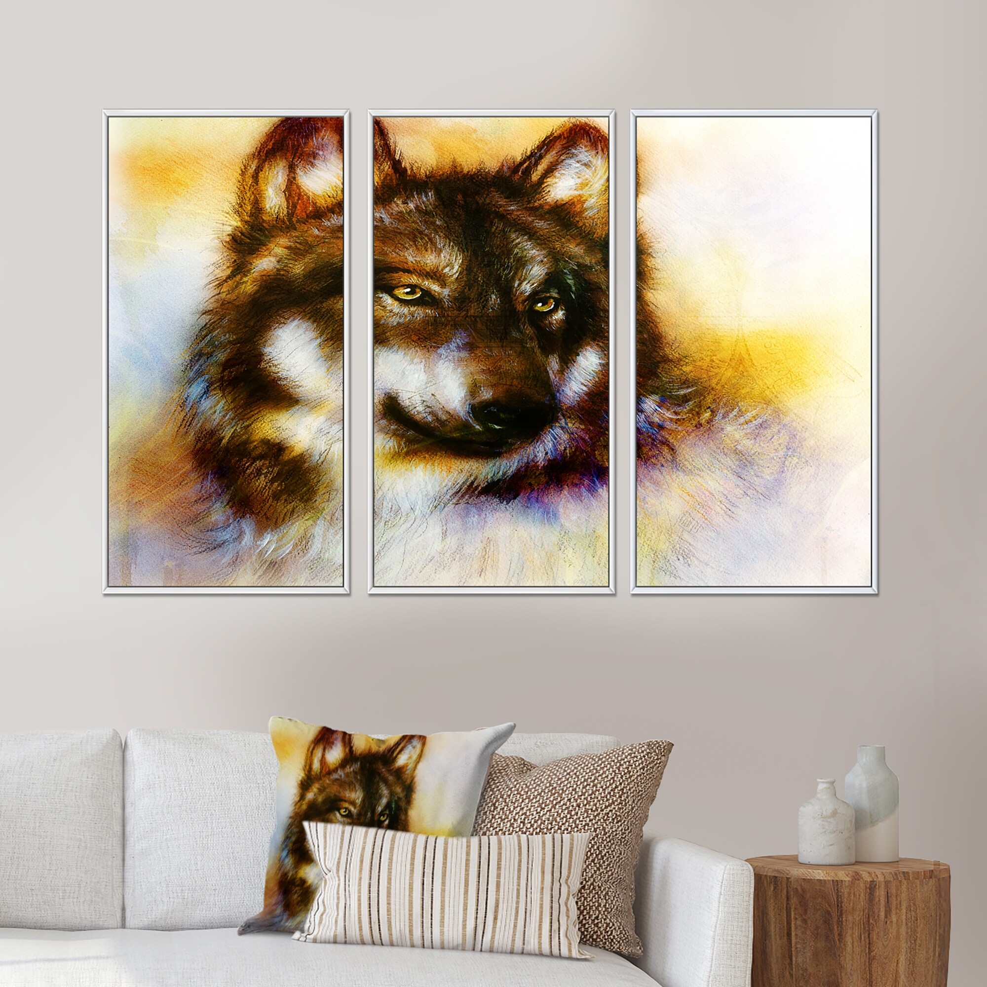 Designart "Portrait Of a Wolf I" Traditional Framed Wall Decor Set of 3 - 4 Colors of Frames