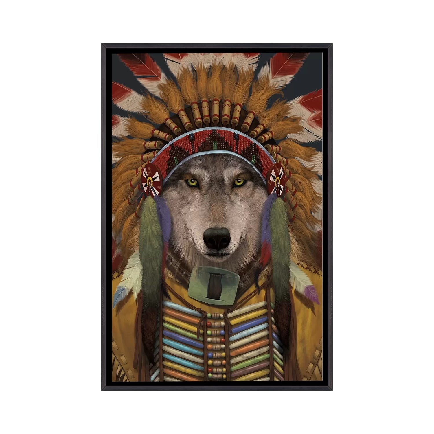 iCanvas "Wolf Spirit Chief" by Vincent Hie Framed