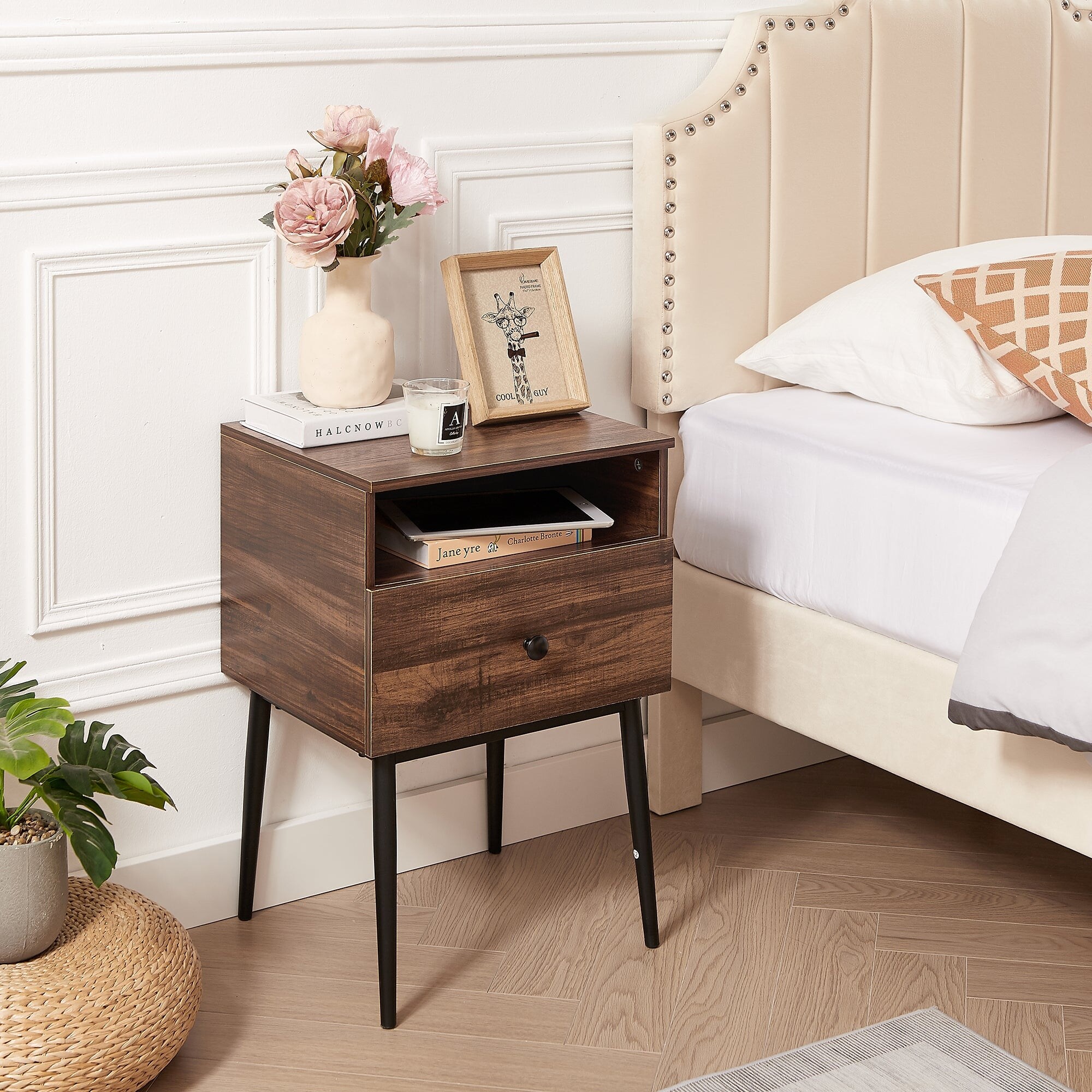 VECELO, (Set of 2) Modern 1-Drawer Wood Nightstand