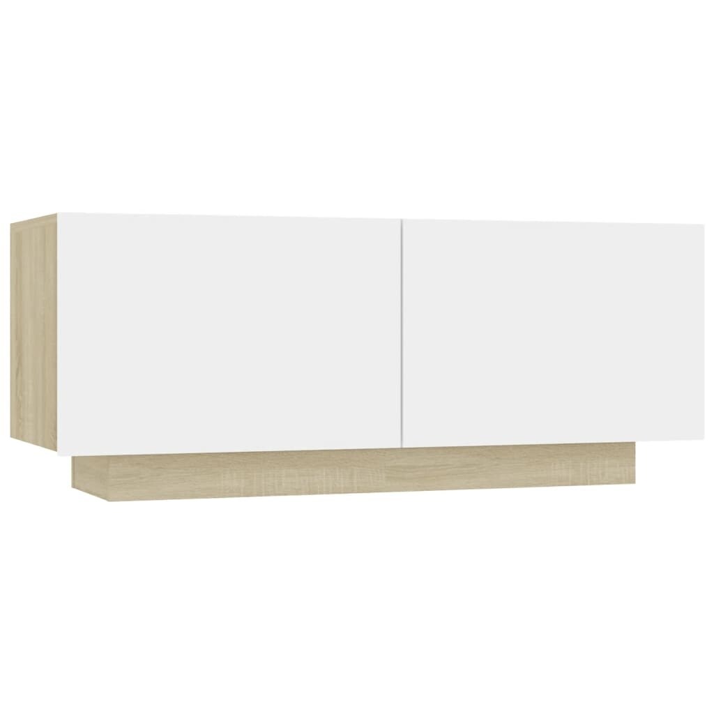vidaXL TV Stand White and Sonoma Oak 39.4"x13.8"x15.7" Engineered Wood - 39.4" x 14" x 16"