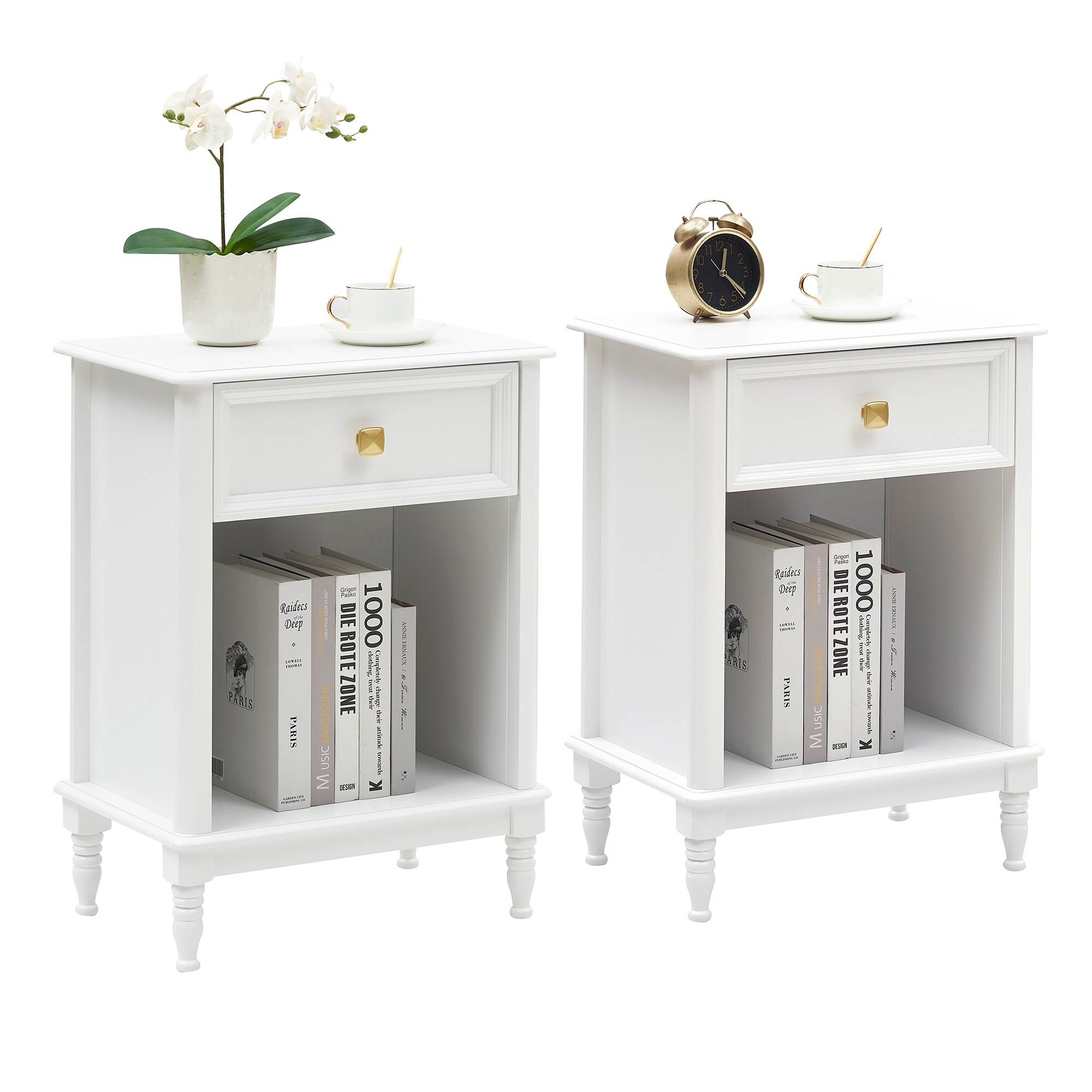 Set of 2 Wood Nightstands for Bedroom - 11.8"D x 17.7"W x 24.4"H