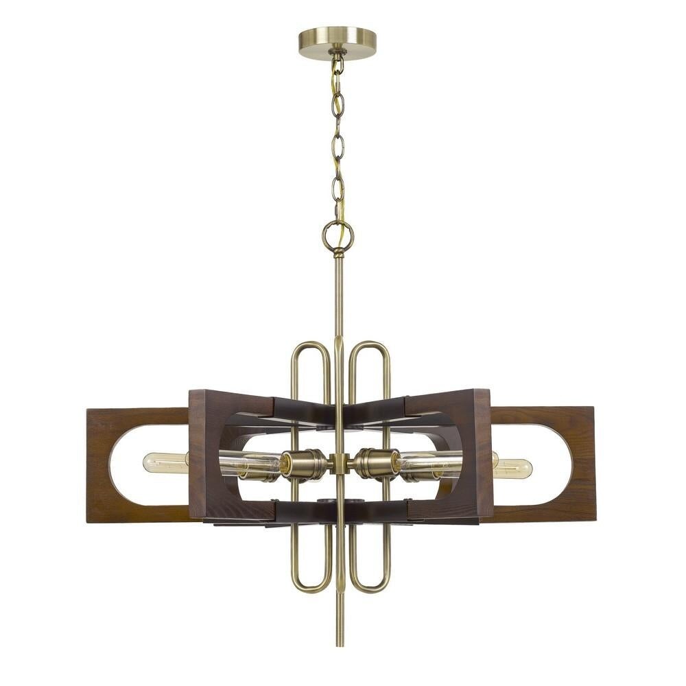 Fan Blade Design Wooden Chandelier with Metal Frame, Gold and Brown - 25 H x 30 W x 30 L Inches